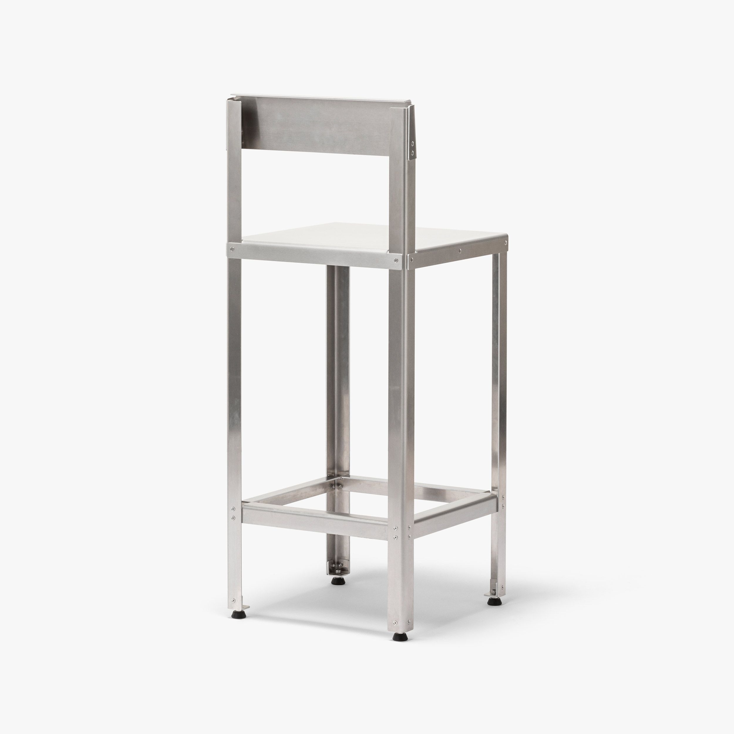 The Alu High Chair is an elegant bar stool, the perfect seat for elevated counters and tables. The Alu High Chair is a variant of the Alu High Stool researching the material properties and production opportunities of sheet metal.