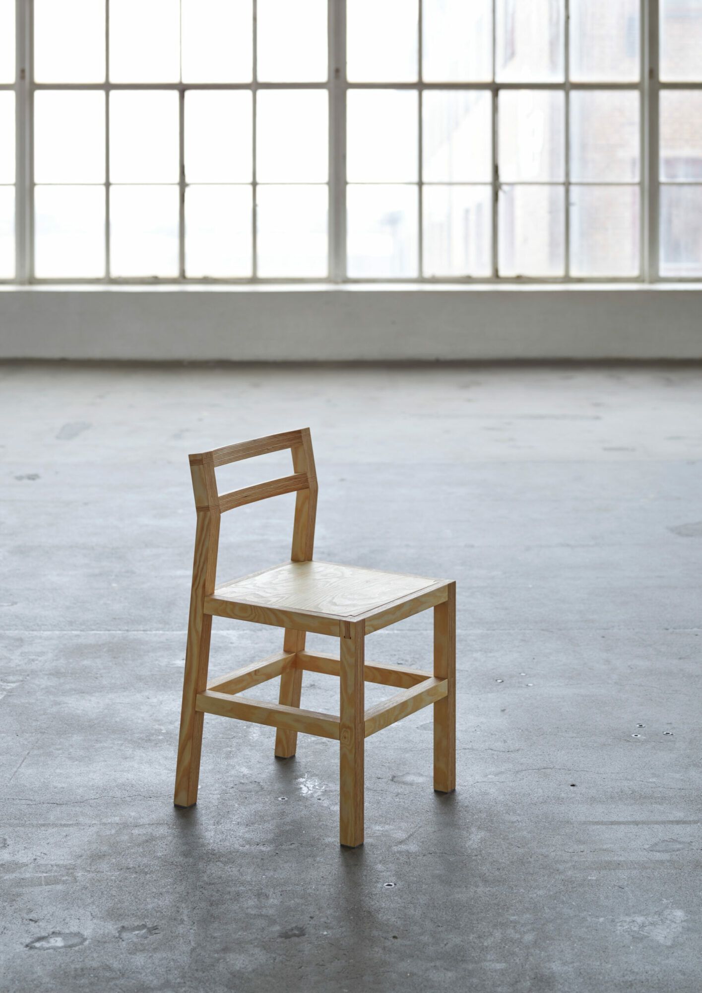 The Ply Chair has a strict rhythm and dynamic pattern that works as standalone object or as a series for the dining table. Made entirely of laminated pine plywood, this chair contains the texture and visual identity of the process in which it was produced. It showcases how industrial materials, with the right technology and care, can be uplifted to present a new definition of material quality. Designed and manufactured in-house in Copenhagen, Denmark.