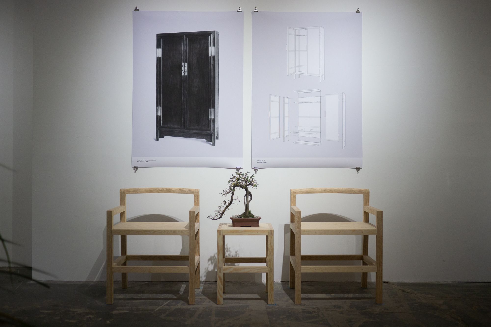 Give Tradition A New Meaning, Copenhagen Guest City, Beijing Design Week 2018 The core of the exhibition, “Give Tradition A New Meaning”, is Furniture Studies No.1, which are historical furniture redesigned as democratic design. This series aims to reinvent the joinery, structure, and proportions of traditionally-crafted Ming dynasty furniture through contemporary materials and digital fabrication techniques. In this technology-dominated era, digital fabrication has become a standard production process. On the other hand, traditional craft has been in demise, due to its time-consuming techniques and the decreasing amounts of skilled craftsmen. With our interests in both areas, we are using digital fabrication to interpret and preserve traditional craft. Our hope is to preserve the old techniques while granting digital fabrication more humanity. Another meaning for tradition that we try to instill is the democratization of quality. Instead of using traditionally luxurious materials, we have developed a production technique that allows us to use laminated plywood, an affordable and readily available material. We add quality to the furniture through the innovative and sensitive use of digital fabrication, not through the use of expensive materials or time-consuming processes. This approach democratizes time-proven craft techniques and allows for easy DIY production. In this exhibition, the furniture is arranged using the hierarchy found in traditional Chinese interior settings. As in these traditional settings, each piece of furniture is duplicated, forming a harmonious and ordered symmetry in the space. Most of the furniture and joint samples are marked to be disassembled, allowing visitors to physically interact with the furniture by assembling and disassembling it. This interactive aspect allows visitors to understand the contextualized traditional techniques in a physical way, reaching a deeper appreciation of giving tradition a new meaning.