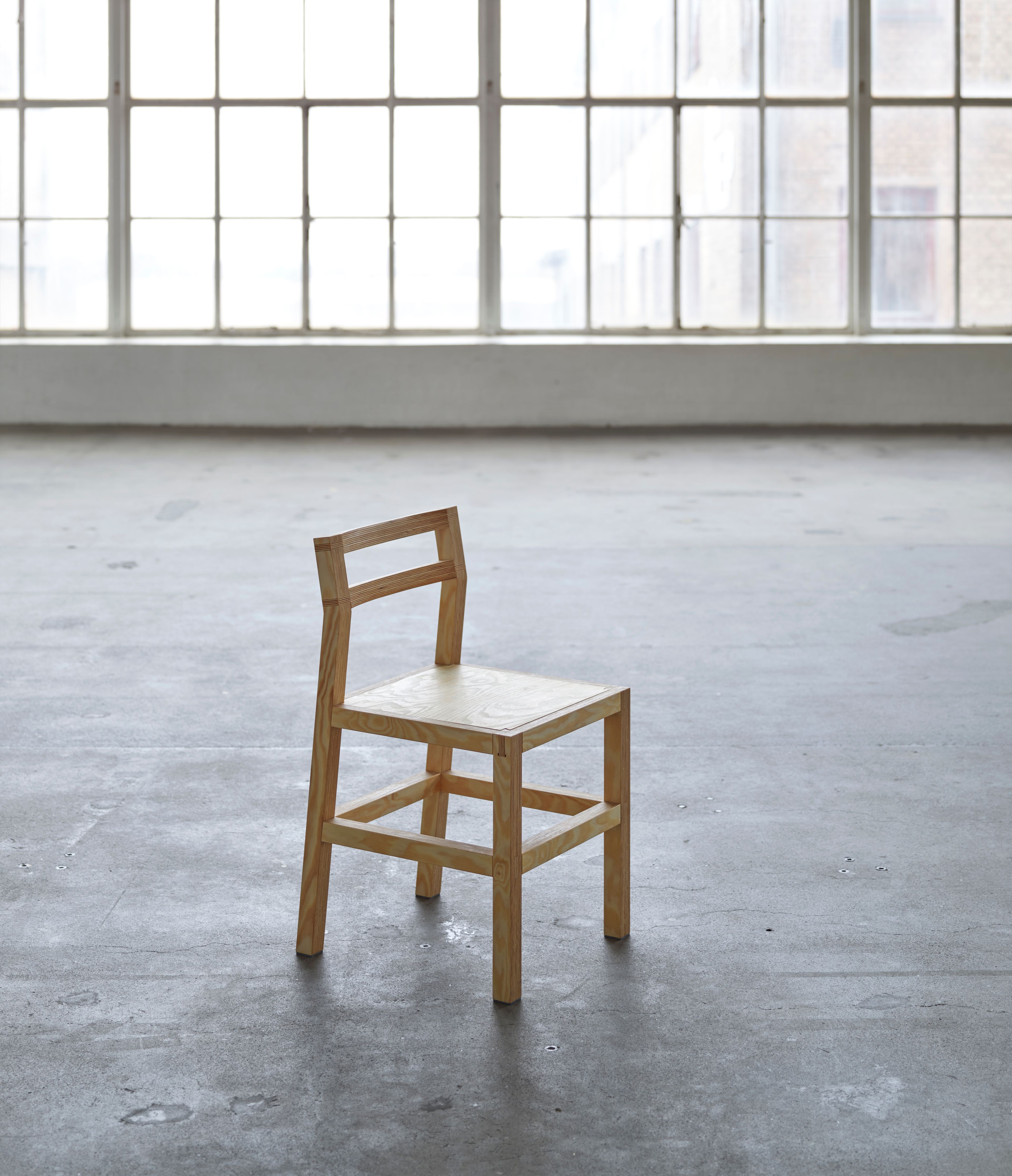 Chair 02 is the next iteration of Chair 01 from our first research into structure; Furniture Studies 01 is a series of plywood furniture that aims to reinvent the joinery, structure, and proportions of traditionally-crafted Chinese and Japanese furniture through contemporary materials and digital fabrication techniques. Made entirely of laminated interior-grade pine plywood, Chair 02 contains the texture and visual identity of the process in which it was produced. Chair 02 is the result of relating the virtual tools to what the digital does not have, namely, the human aspect. The ability to reach this requires a mindful, reflective, and iterative approach that comes from achieving resonance with a particular situation.