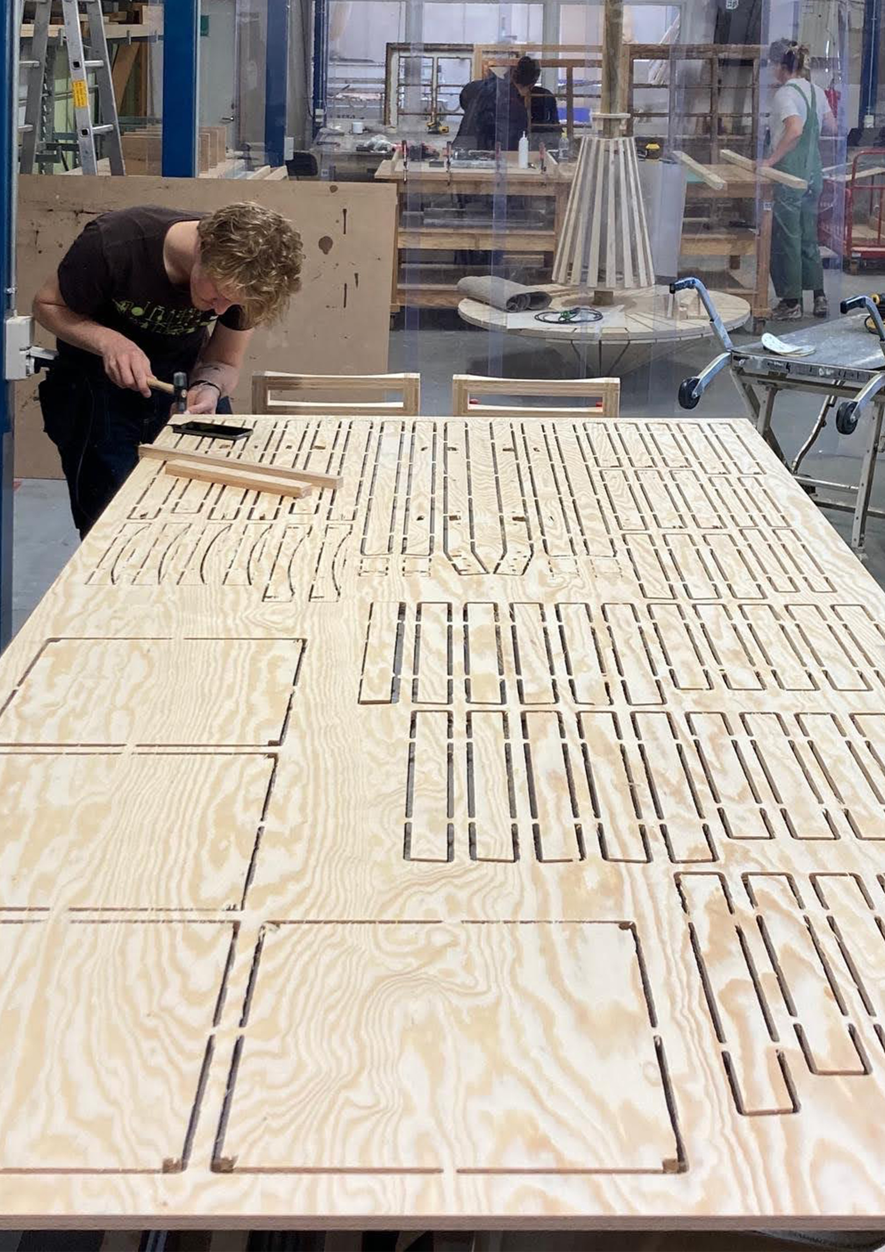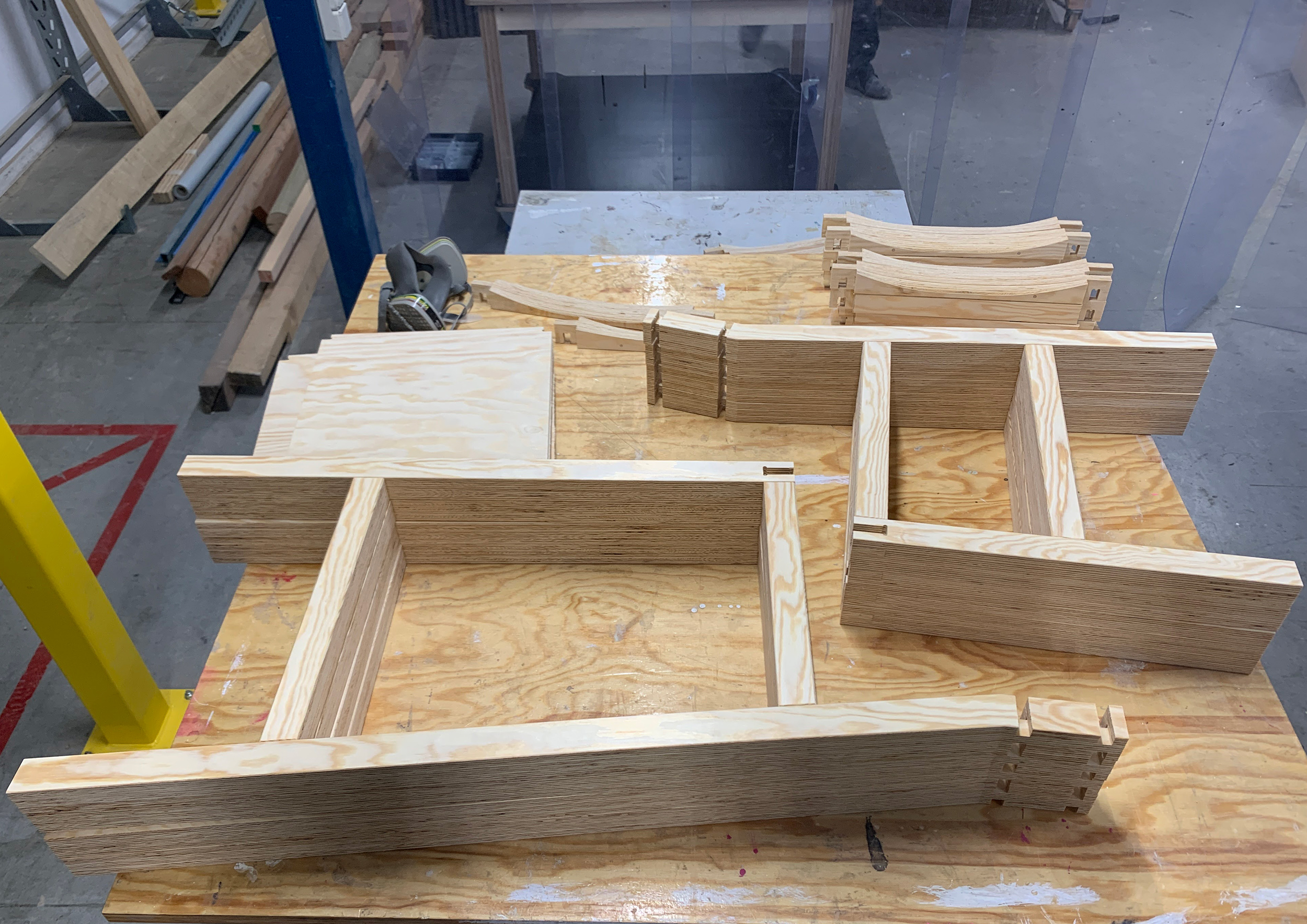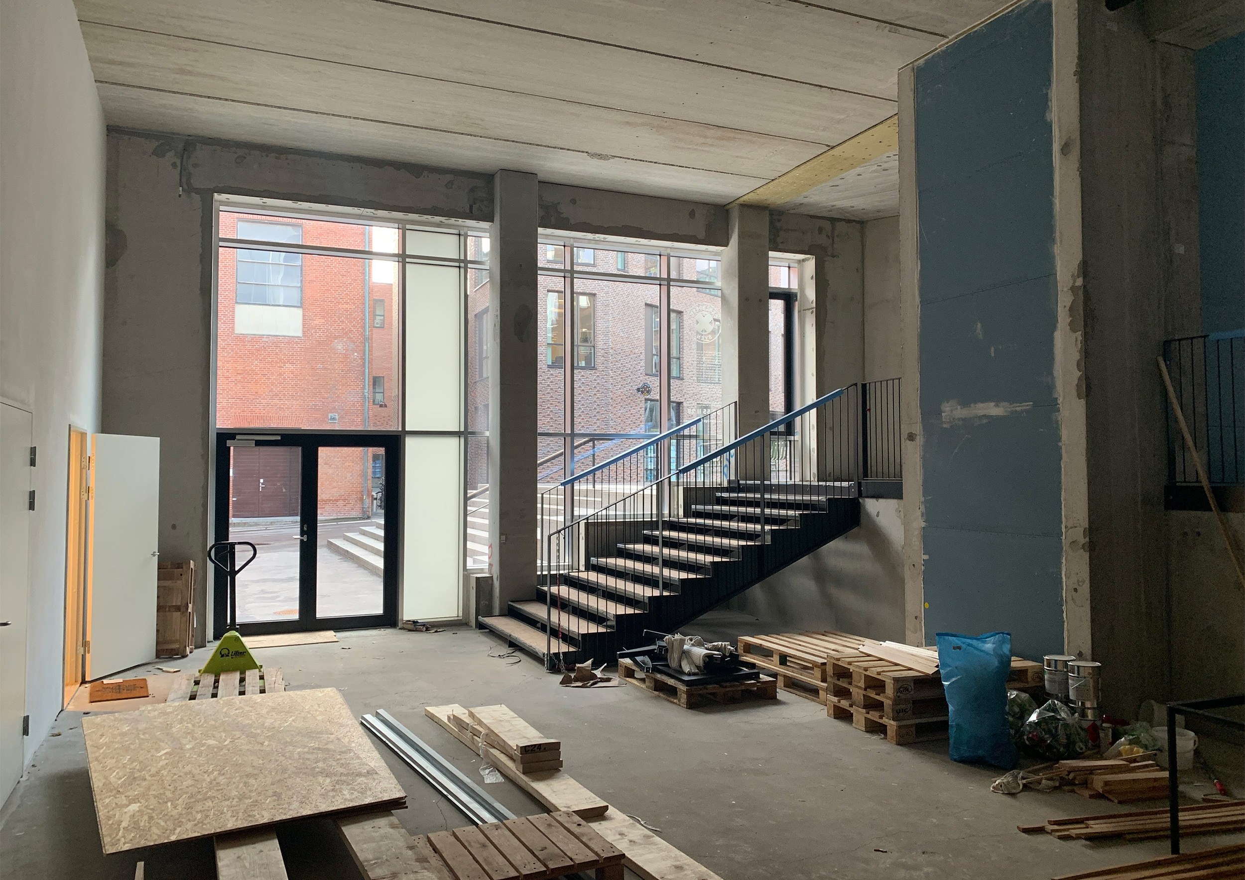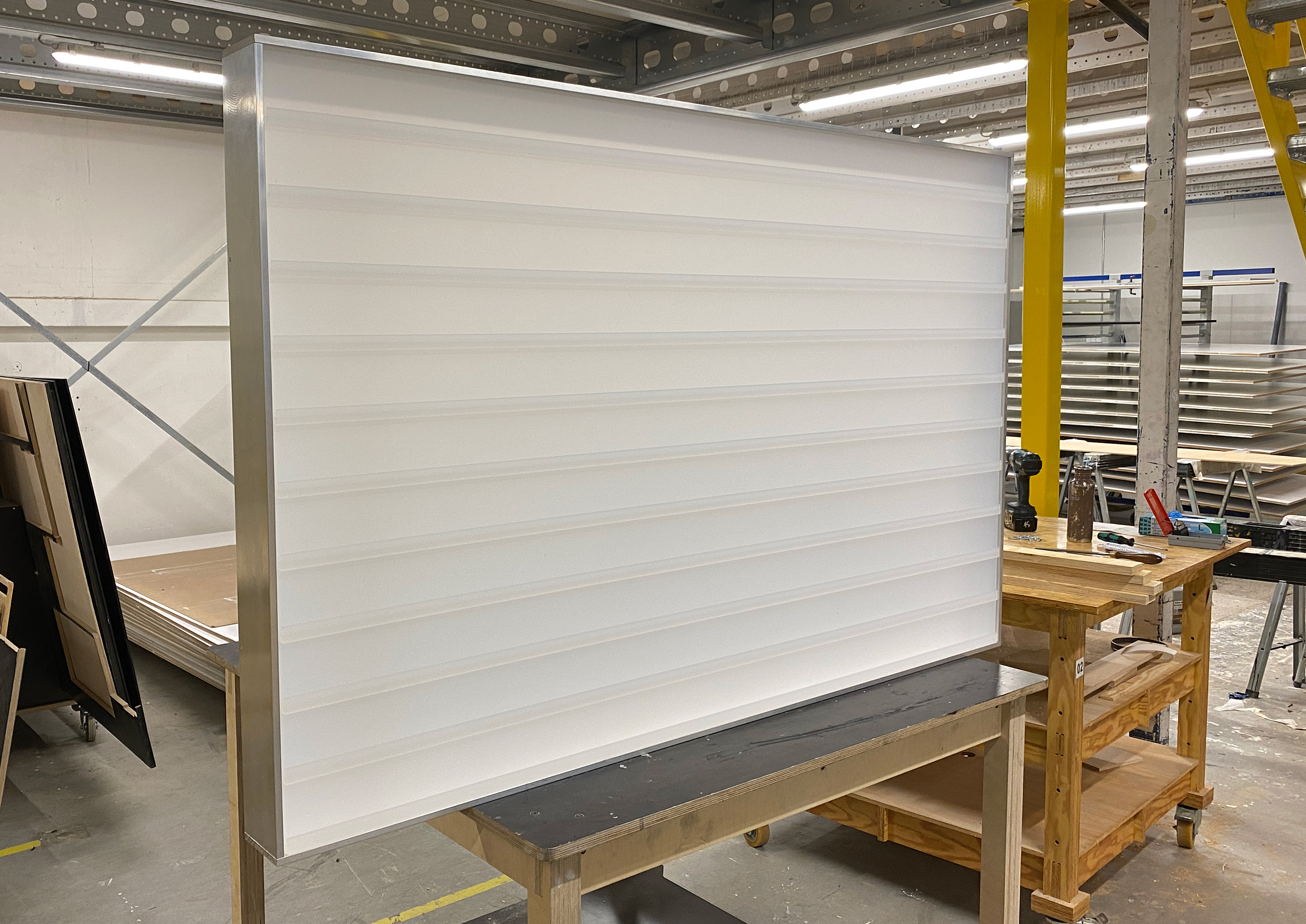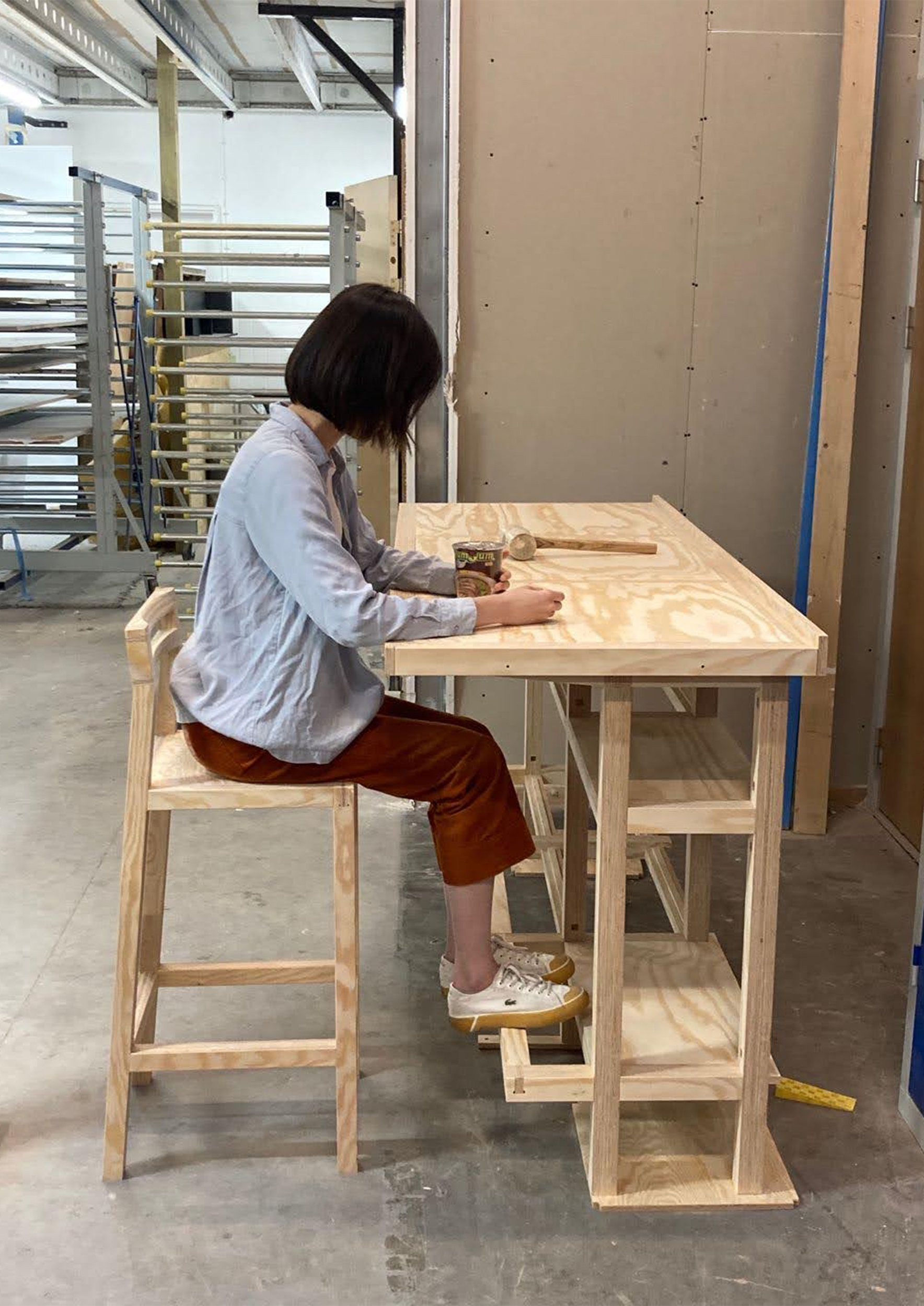 Kōnā’s interior unfolds in two distinct spaces. Guests first step into the intimate Izakaya, where a soft, low textile ceiling creates a relaxed atmosphere. As they descend the stairs, the space expands dramatically, revealing the Omakase Bar with its soaring height. Suspended textiles and carefully designed lighting soften the concrete’s rawness while giving the space a distinct identity. As guests move through, translucent orange textiles shift in appearance, dissolving into an atmospheric cloud of color. This interplay of light and material infuses warmth into the cool concrete, creating a space that feels both stimulating and inviting.