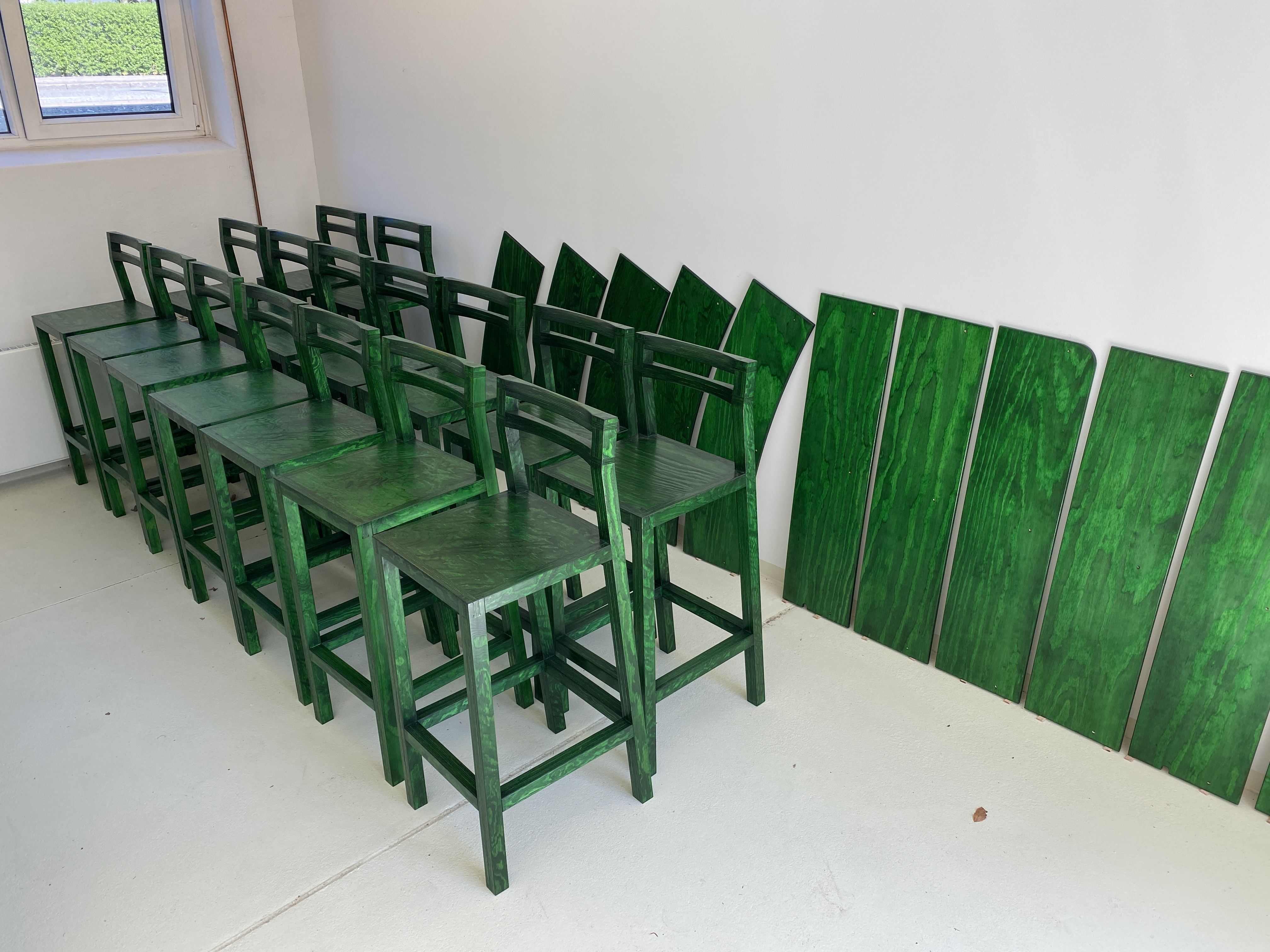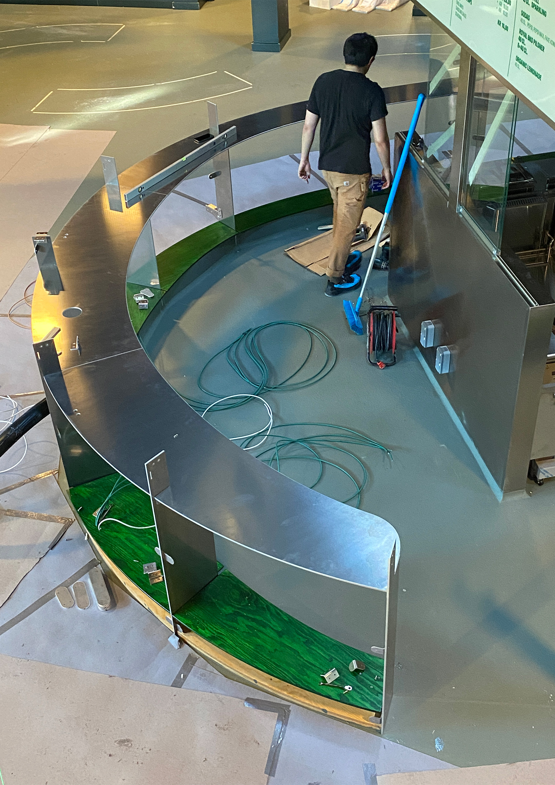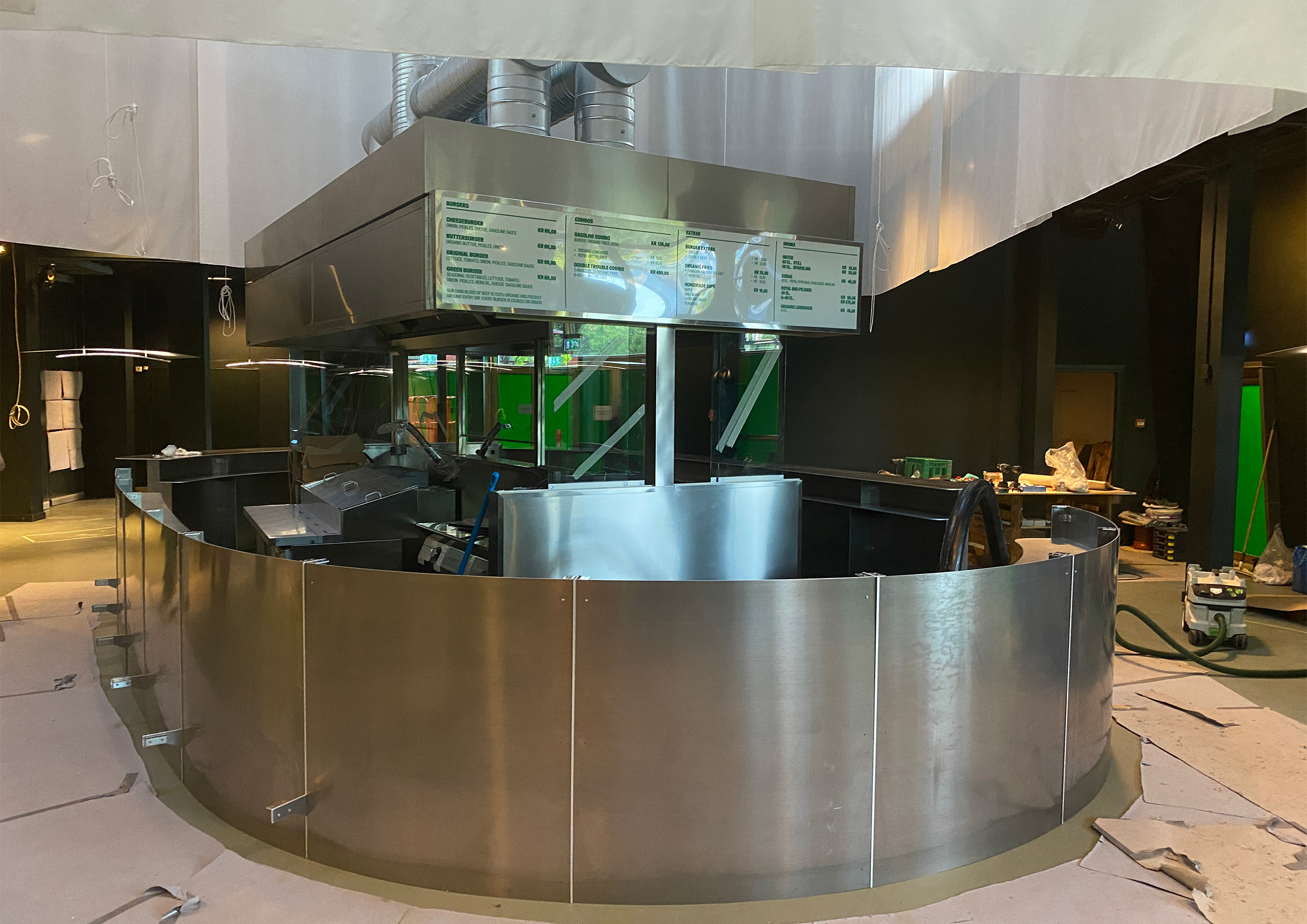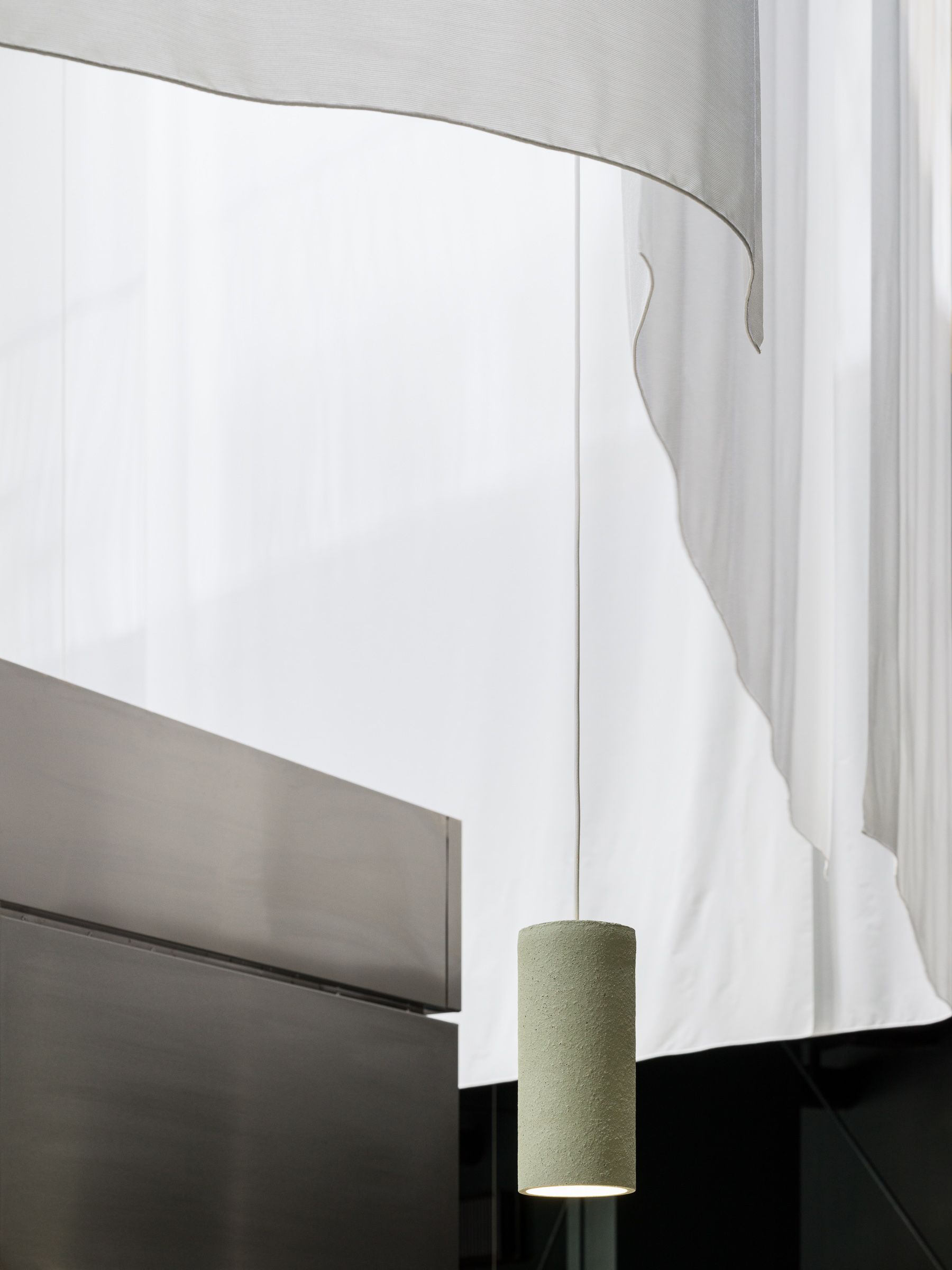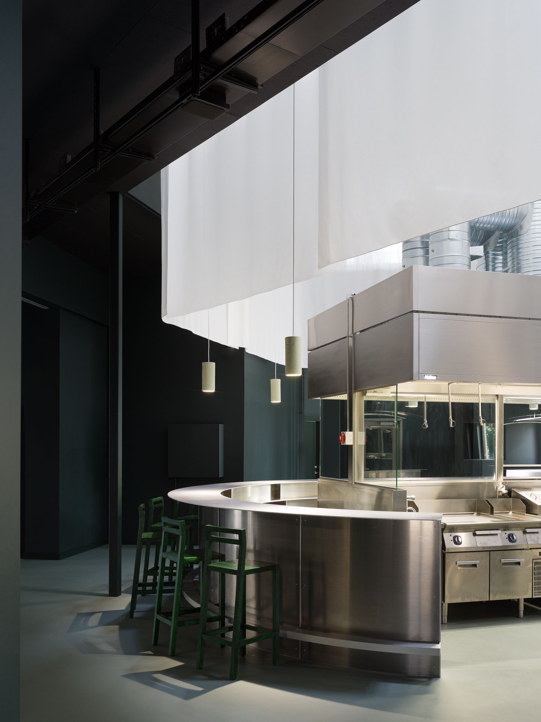 Located in the historic Tivoli Gardens, the space carried traces of its past - from café to Viking attraction. For this transformation, we sought to quiet the surroundings and center the experience around the grill. With deep green-black walls and ceiling, and a 10-meter-long white curtain as a soft focal point, the result is a calm, almost chapel-like atmosphere for this new attraction in Tivoli. When thinking about burger culture, the classic drive-in diners of the Western USA come to mind. These diners grew alongside the booming automotive industry and expanding infrastructure. In some Gasoline Grill locations, the use of metal, curves, and bold lighting reflects this era’s streamlined, industrial aesthetic, paying homage to its practicality and charm. At the same time, the California Light and Space movement emerged. These artists, deeply influenced by the rise of American industry—especially automobiles—focused on creating experiences rather than objects. By playing with light, space, and color, they sought to shift perception and invite people to see the world in new ways.