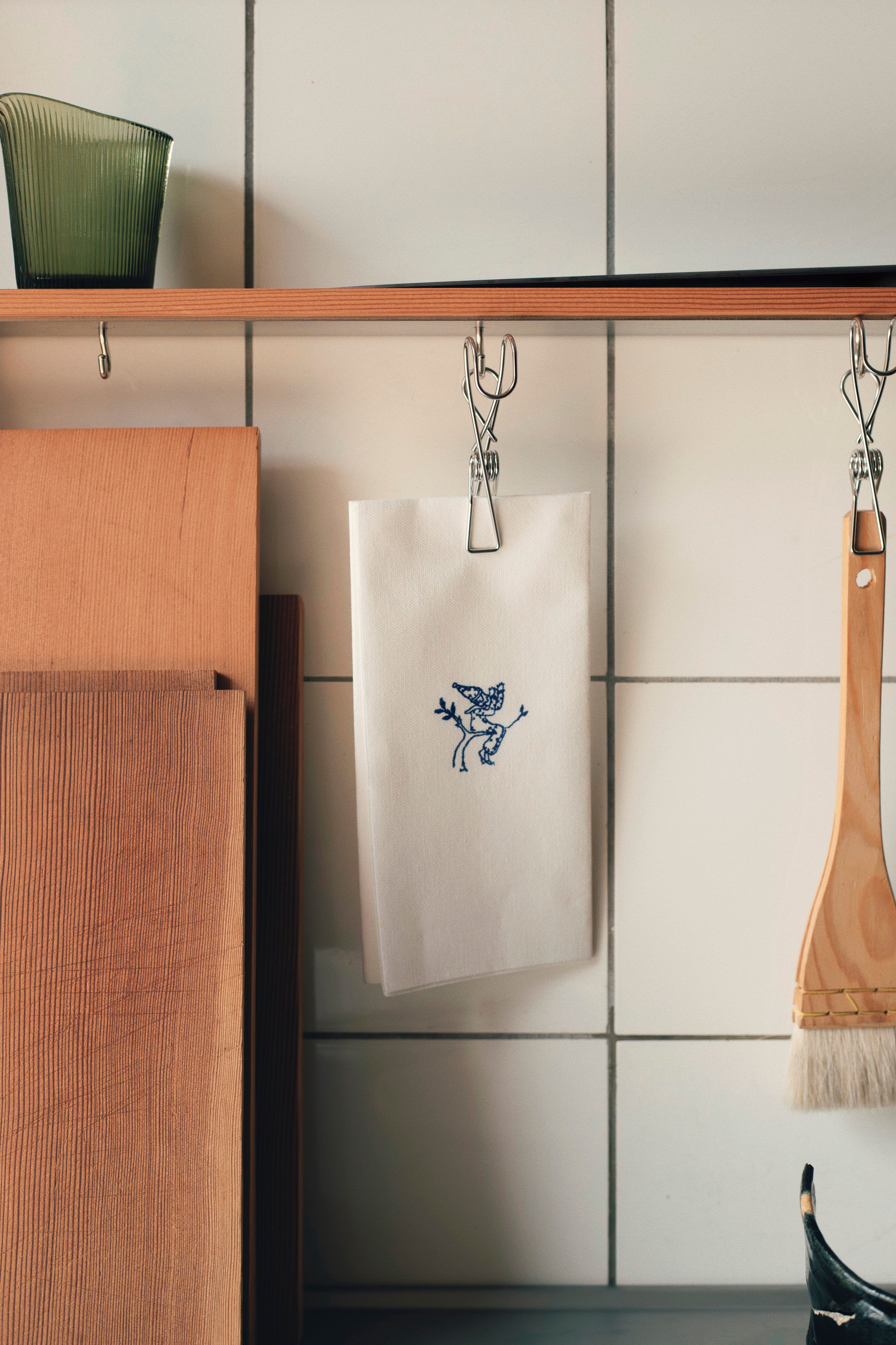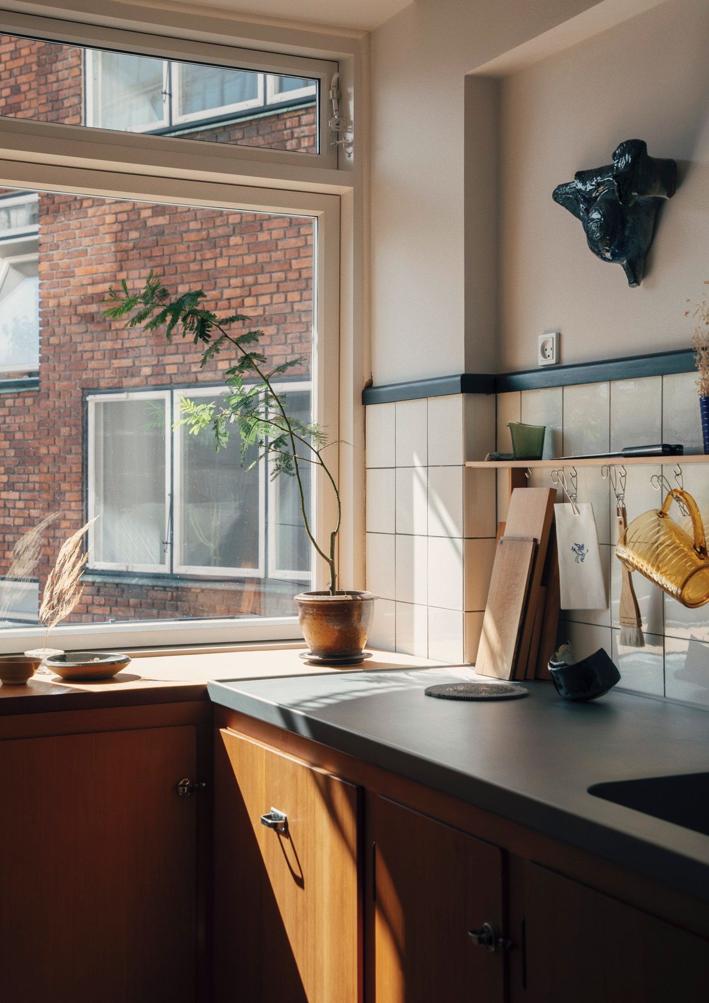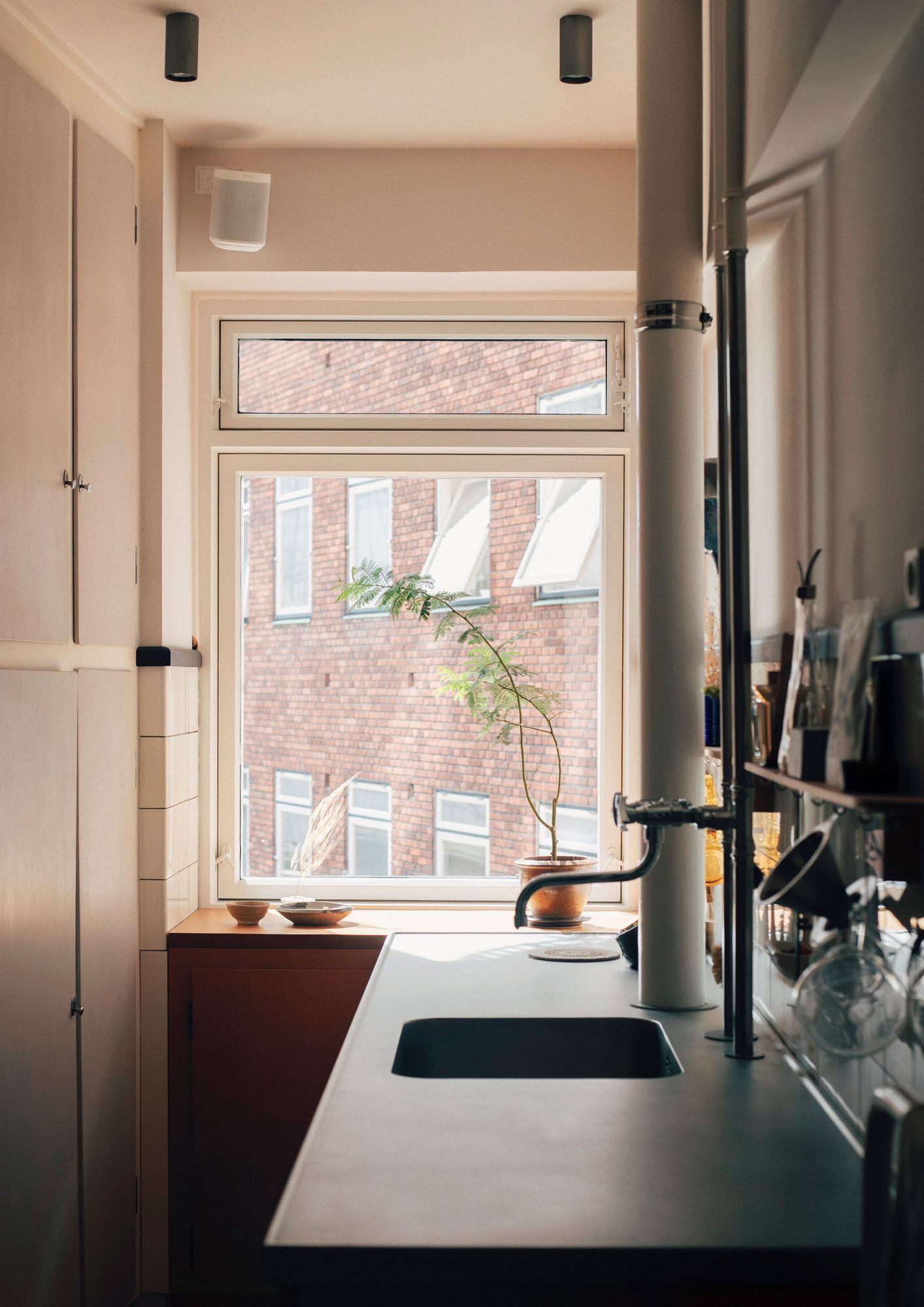 Archival Design in Practice Restoration and additions rooted in original detail and historical integrity. Located in the historically listed Vestersøhus, a building from the 1930s designed by renowned Danish architect Kay Fisker, this 36 m² private apartment in Copenhagen has undergone a detailed restoration and carefull series of additions. Our approach was rooted in a deep respect for the original design and detailing. All work was carried out with approval from SLKS (Agency for Culture and Palaces). Restoration Process The project began with a comprehensive study of the original interiors by Kay Fisker. We undertook a full restoration and reproduction of all wooden elements, including doors, trim, built-in storage units, and the kitchen. Key elements of the restoration included: Uncovering and preserving original materials. The back of the apartment’s rear door revealed a beautiful lacquered veneer, which we carefully restored in collaboration with a preservation painter. Extending original detailing throughout the space. A brown-black foot trim discovered on the entrance cabinet was carried through the apartment to re-establish the original visual language. Recovering the original color palette. A deep cobalt blue was found in earlier layers of wall paint. This color was reintroduced in the bathroom above the tiling and also reflected in the textiles. Reconstructing the kitchen. Due to water damage, the original kitchen was no longer intact. We reproduced it closely, integrating modern appliances while preserving the original design logic. Additions and Material Continuity All new additions were designed in line with the building’s functionalist character, using materials that echoed the originals. Inspired by existing metal details such as the front door handle and steel countertop, we incorporated similar materials in new elements. To make the most of the compact floor area, every addition was conceived with dual functions and built-in character, following the integrated approach seen throughout the original interiors. Archival Research and Documentation All blueprints were located in the comprehensive Building Preservation Manual by Wamings Tegnestue, a beautifully detailed resource. We have added our own documentation and links to this archive. We welcome opportunities to share our knowledge of surface restoration, hardware reproduction, and the design of integrated architectural elements. Design collaboration with architect Georgina Prittie