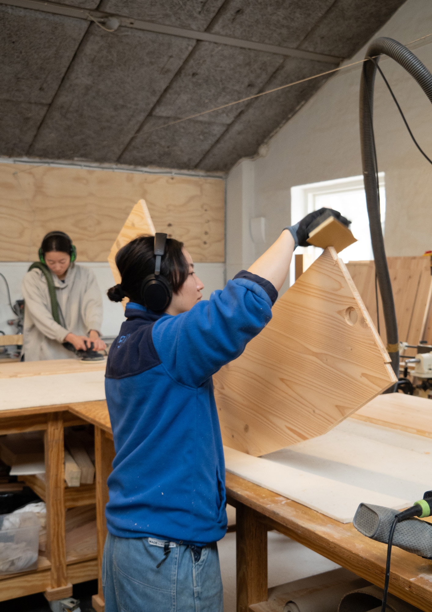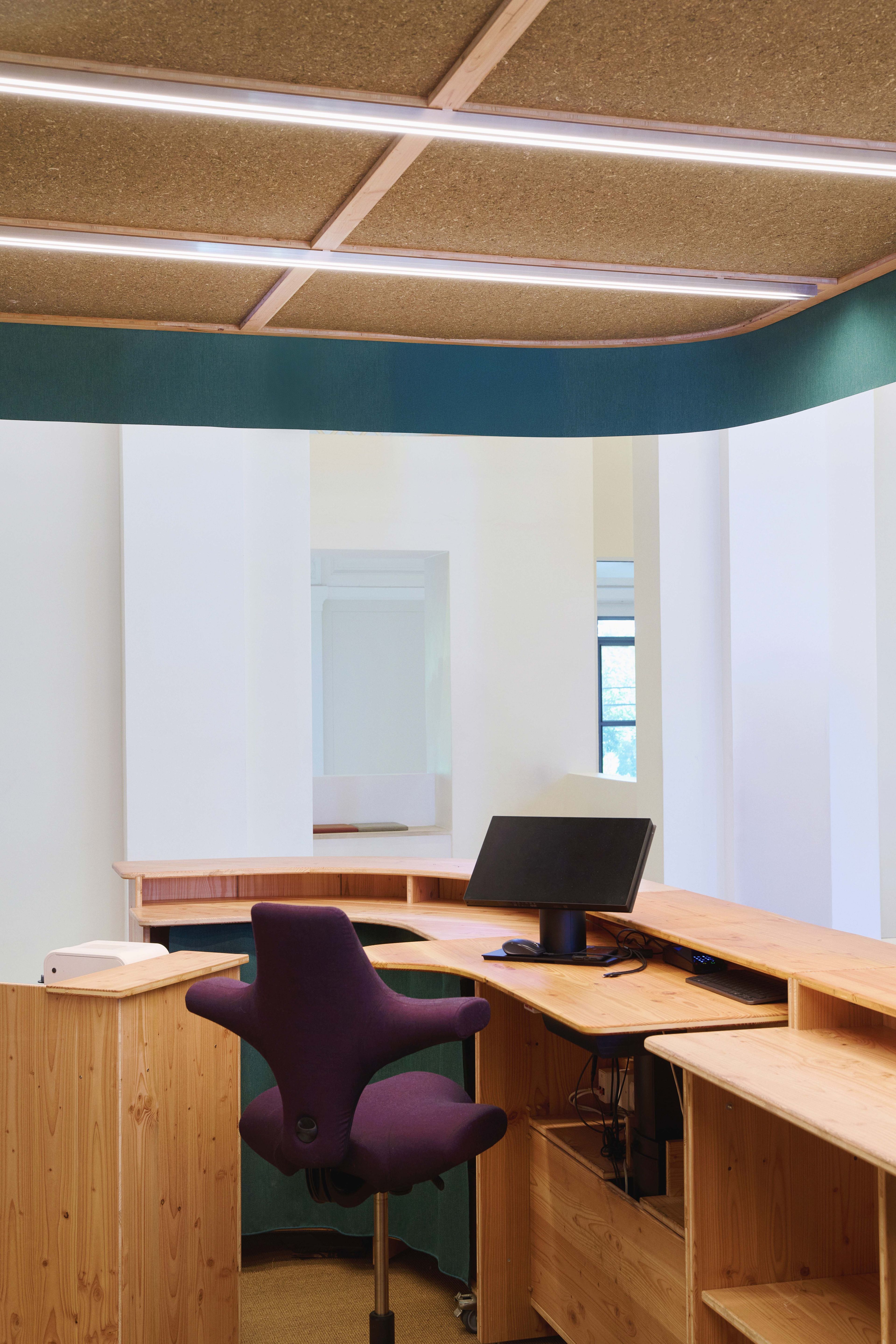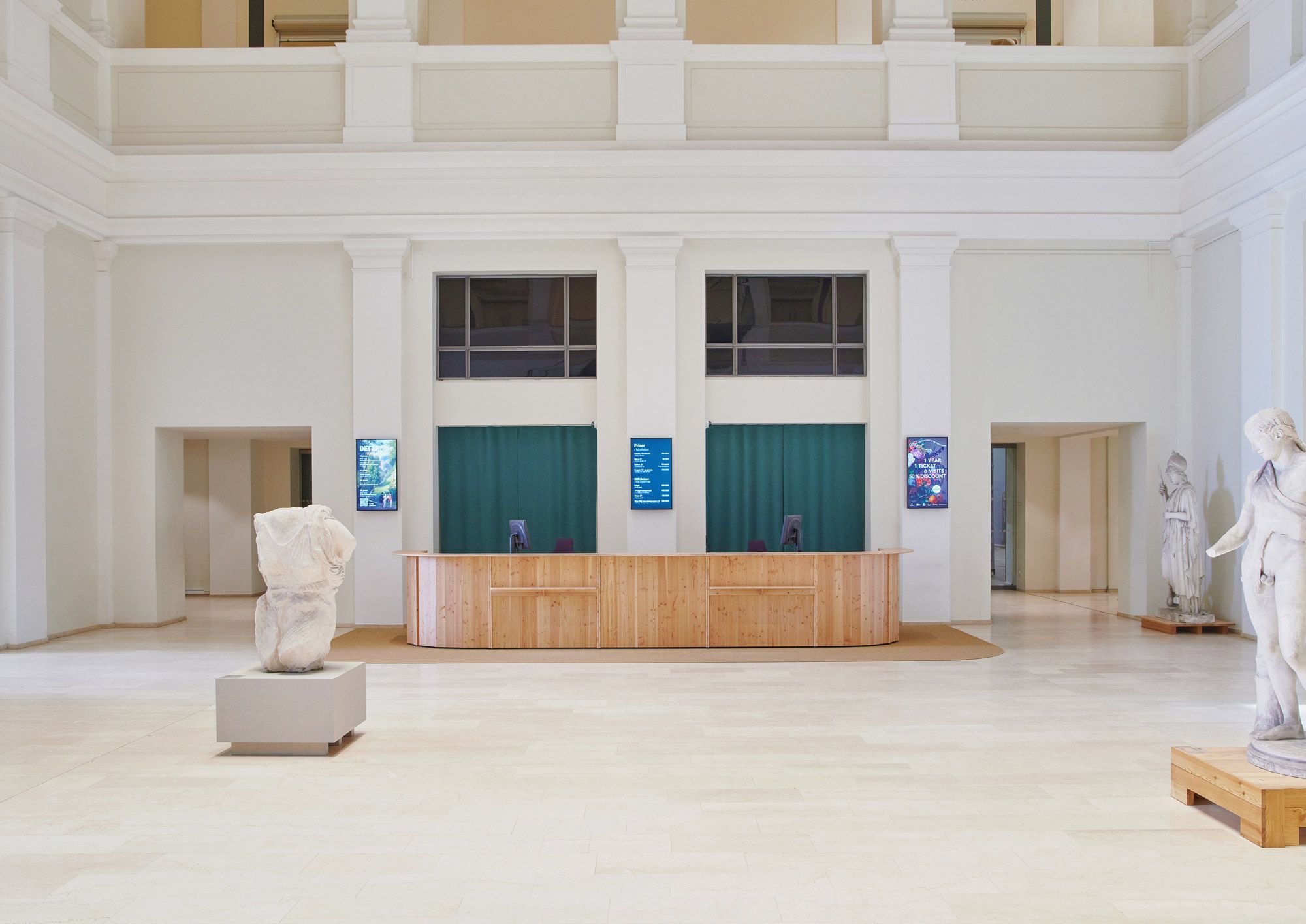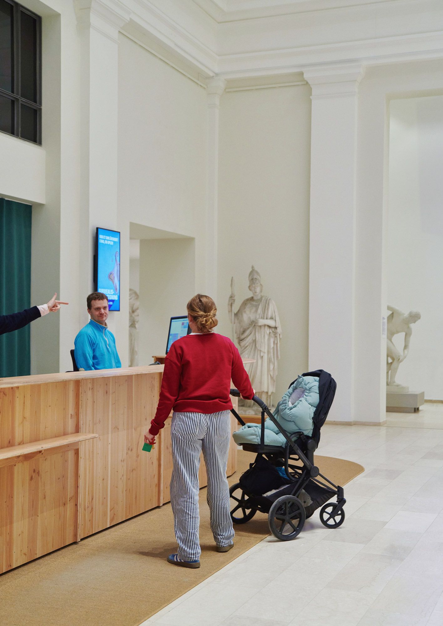 A New Welcome Desk for SMK Archival has been commissioned to design and produce the new welcome desk and ticket counter at Denmark’s Statens Museum for Kunst. This project extends beyond a single element - we were invited to consider the entire entrance hall while developing the design. With parts of the Danish National Gallery (SMK) set to undergo renovations, our intervention marks a starting point for many exciting changes to the historical institution. A Long-Term, Evolving Approach Our method focuses on long-term collaborations, with the ambition to work closely to create sensory-rich, adaptable design solutions that evolve over time. Our ongoing collaboration with SMK reflects this approach. We are currently working on their Welcome Desk, where we have created a welcoming, human-scale point of access within the museum’s vast entrance hall. For the first phase, we designed and built the counter for a quicker turnaround and to experience it physically before beginning the design of the acoustic canopy. In the second phase, we designed and built the canopy, which adds acoustic dampening, additional wayfinding, and custom lighting to support both staff and visitors. A Thoughtful, Human-Centered Design Positioned at the heart of SMK’s grand entrance, the welcome desk serves both as a ticket counter and a visual guide for visitors. The warm, understated counter, combined with a carpeted floor and a calming textile backdrop, introduces texture and tactility. This design creates a welcoming, human-scale point of access within the museum’s vast entrance hall. Flexible and Sustainable Construction The central counter consists of five flexible modules. Castors on each module allow easy repositioning, enabling the layout to evolve with SMK’s needs. Panels are not glued but attached with screws, making repairs, customization, and reuse possible. For the production and material choices, we wanted to bring something natural, warmly textured, and structurally clear to the otherwise clean, pale, and hard-surfaced entry hall. In dialogue with Holst Engineering, we CNC-cut plywood and built our own I-beam profiles, which were fitted with the Danish eelgrass product Søuld. Beyond its beautiful dark texture, the material carries a strong Danish narrative and sensory qualities while meeting the high fire-safety regulations of the space. Continuing Our Collaboration with SMK This project builds on our previous work at SMK. In earlier Archival projects, we designed planters and seating patterns throughout Sculpture Street. Our goal was to create a smooth transition between the museum’s classical and modern sections, offering an inviting public space where visitors can engage with the museum in their own way. Collaboration between emerging creative practices and large institutions has great potential, particularly in Denmark’s rich cultural landscape. We are honored to continue our partnership with SMK and look forward to help shaping the future of the museum’s Entrance Hall.