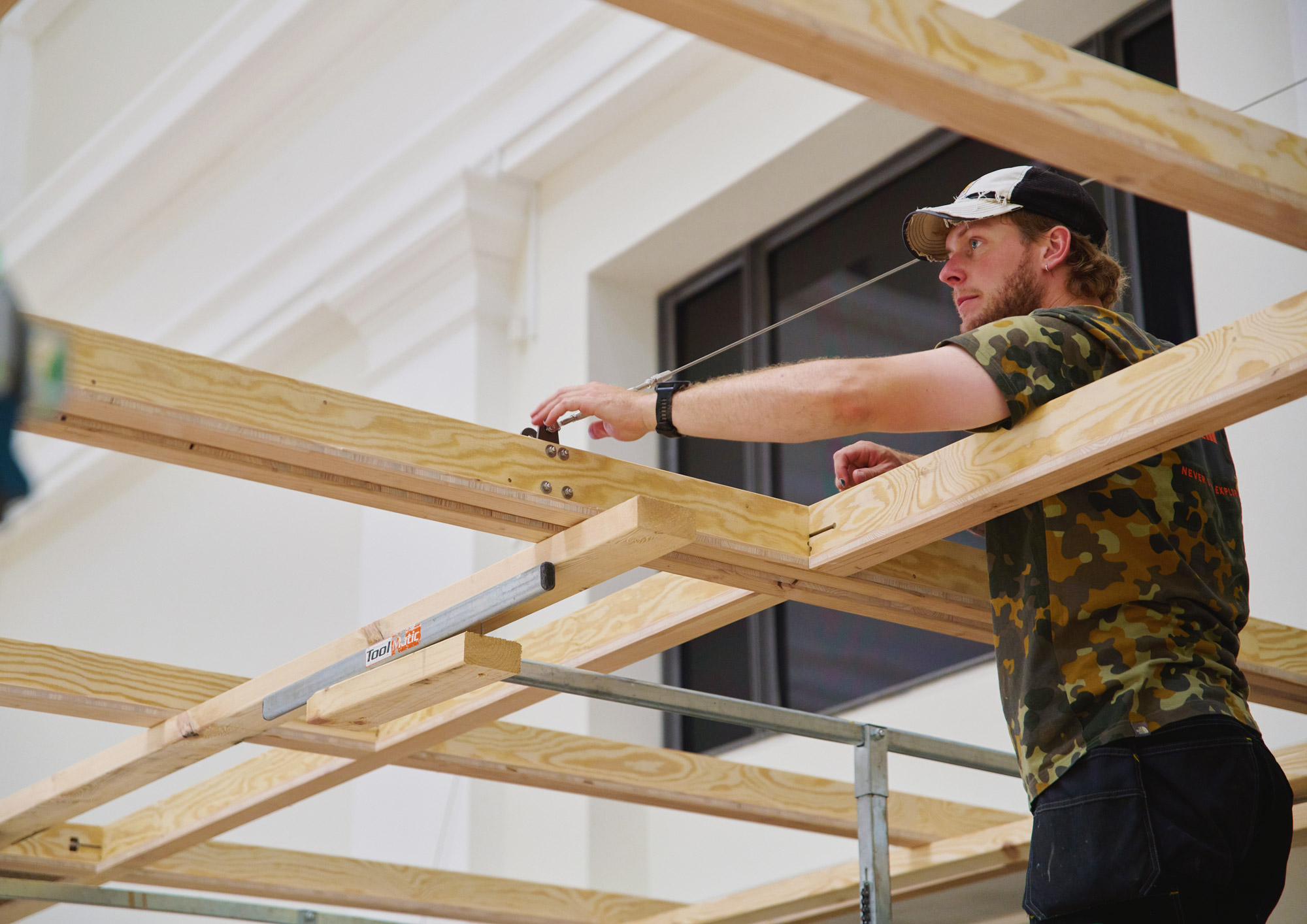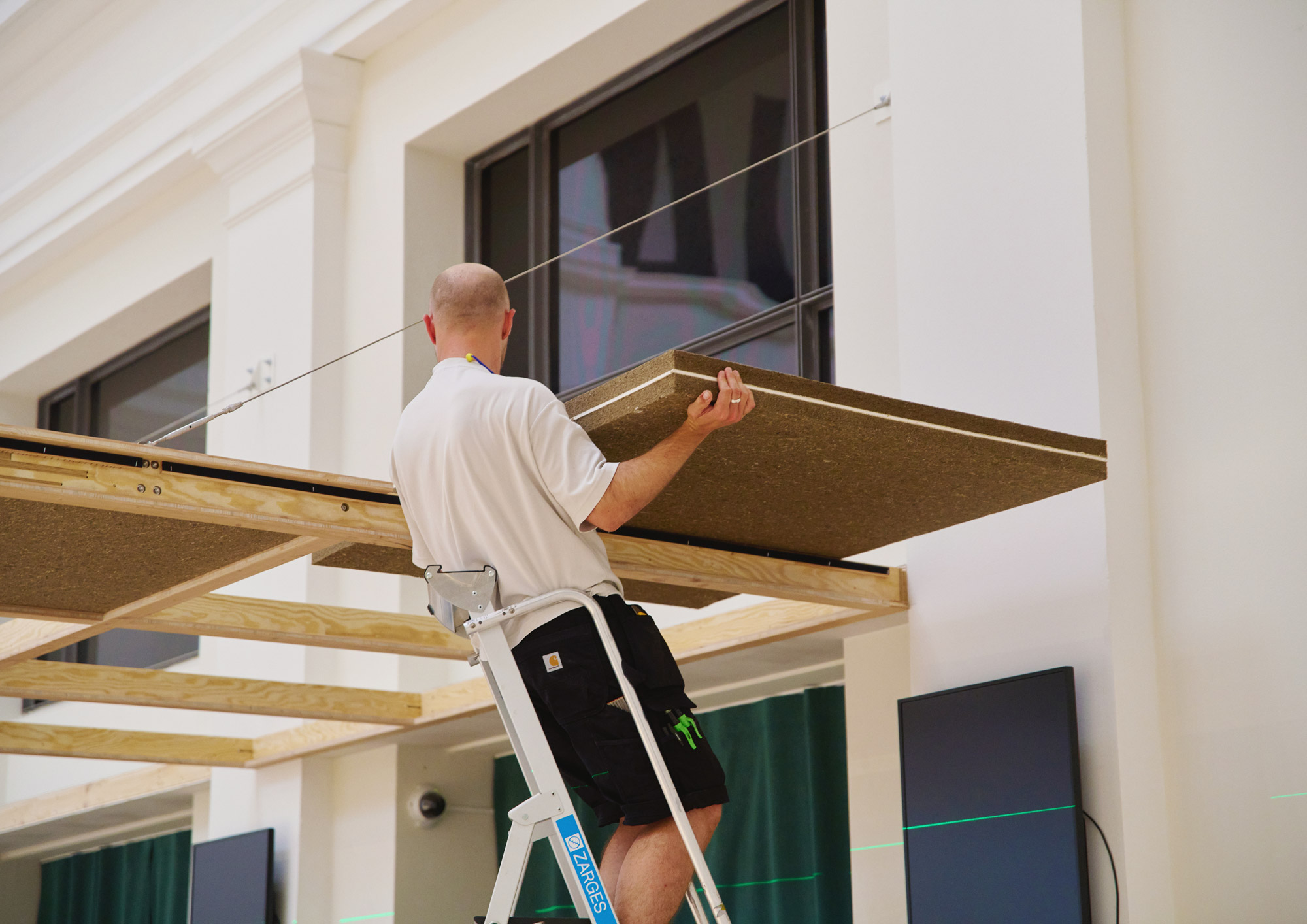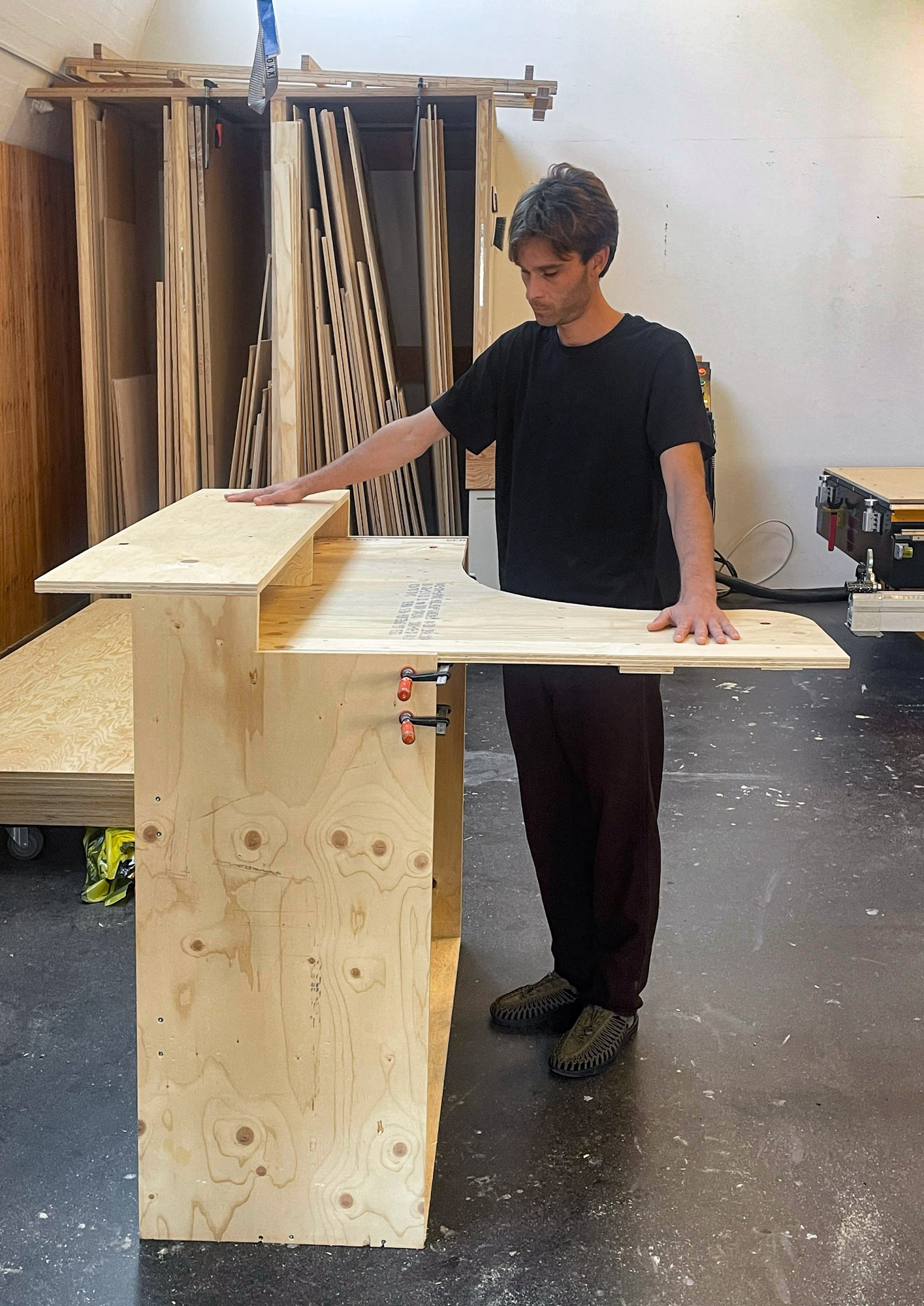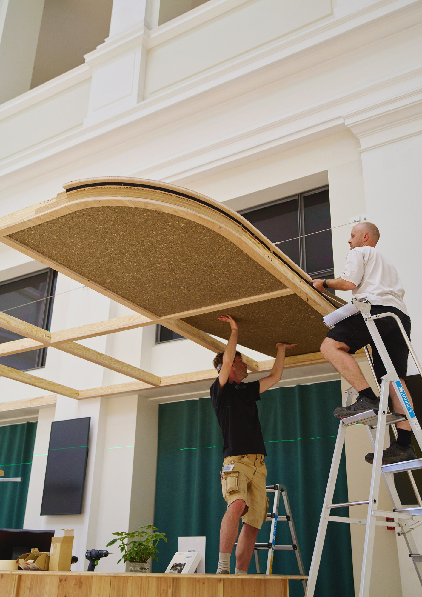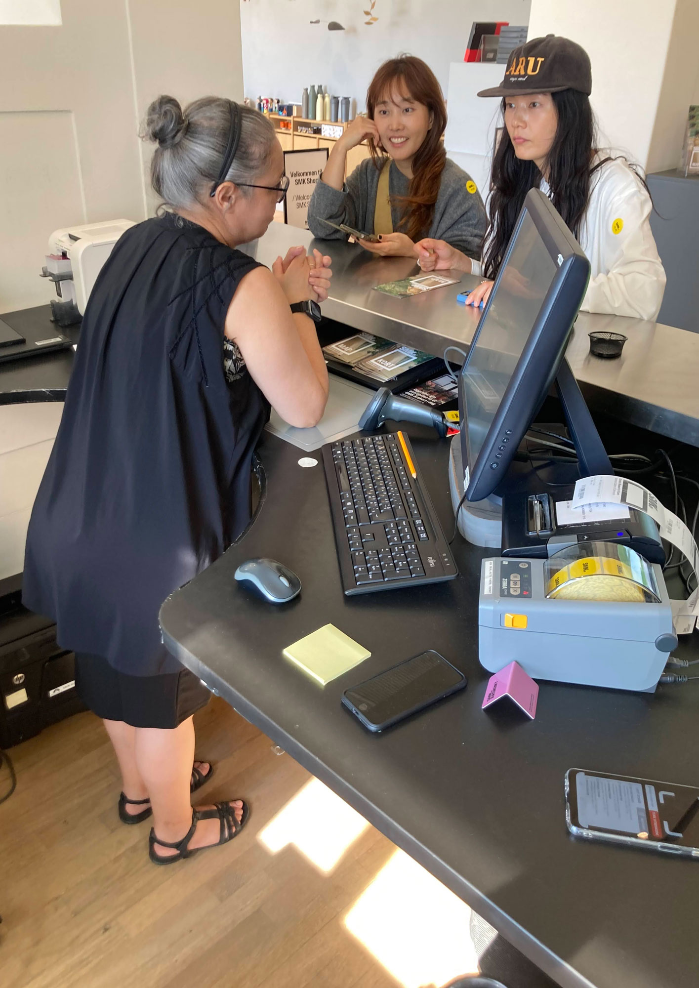 A New Welcome Desk for SMK Archival has been commissioned to design and produce the new welcome desk and ticket counter at Denmark’s Statens Museum for Kunst. This project extends beyond a single element - we were invited to consider the entire entrance hall while developing the design. With parts of the Danish National Gallery (SMK) set to undergo renovations, our intervention marks a starting point for many exciting changes to the historical institution. A Long-Term, Evolving Approach Our method focuses on long-term collaborations, with the ambition to work closely to create sensory-rich, adaptable design solutions that evolve over time. Our ongoing collaboration with SMK reflects this approach. We are currently working on their Welcome Desk, where we have created a welcoming, human-scale point of access within the museum’s vast entrance hall. For the first phase, we designed and built the counter for a quicker turnaround and to experience it physically before beginning the design of the acoustic canopy. In the second phase, we designed and built the canopy, which adds acoustic dampening, additional wayfinding, and custom lighting to support both staff and visitors. A Thoughtful, Human-Centered Design Positioned at the heart of SMK’s grand entrance, the welcome desk serves both as a ticket counter and a visual guide for visitors. The warm, understated counter, combined with a carpeted floor and a calming textile backdrop, introduces texture and tactility. This design creates a welcoming, human-scale point of access within the museum’s vast entrance hall. Flexible and Sustainable Construction The central counter consists of five flexible modules. Castors on each module allow easy repositioning, enabling the layout to evolve with SMK’s needs. Panels are not glued but attached with screws, making repairs, customization, and reuse possible. For the production and material choices, we wanted to bring something natural, warmly textured, and structurally clear to the otherwise clean, pale, and hard-surfaced entry hall. In dialogue with Holst Engineering, we CNC-cut plywood and built our own I-beam profiles, which were fitted with the Danish eelgrass product Søuld. Beyond its beautiful dark texture, the material carries a strong Danish narrative and sensory qualities while meeting the high fire-safety regulations of the space. Continuing Our Collaboration with SMK This project builds on our previous work at SMK. In earlier Archival projects, we designed planters and seating patterns throughout Sculpture Street. Our goal was to create a smooth transition between the museum’s classical and modern sections, offering an inviting public space where visitors can engage with the museum in their own way. Collaboration between emerging creative practices and large institutions has great potential, particularly in Denmark’s rich cultural landscape. We are honored to continue our partnership with SMK and look forward to help shaping the future of the museum’s Entrance Hall.