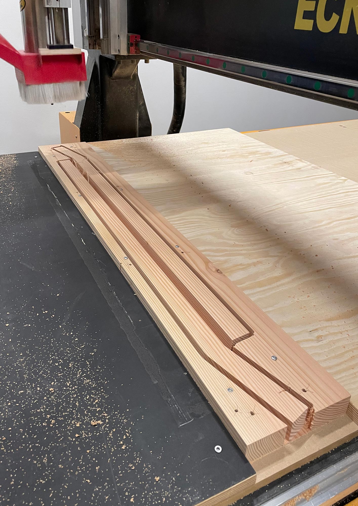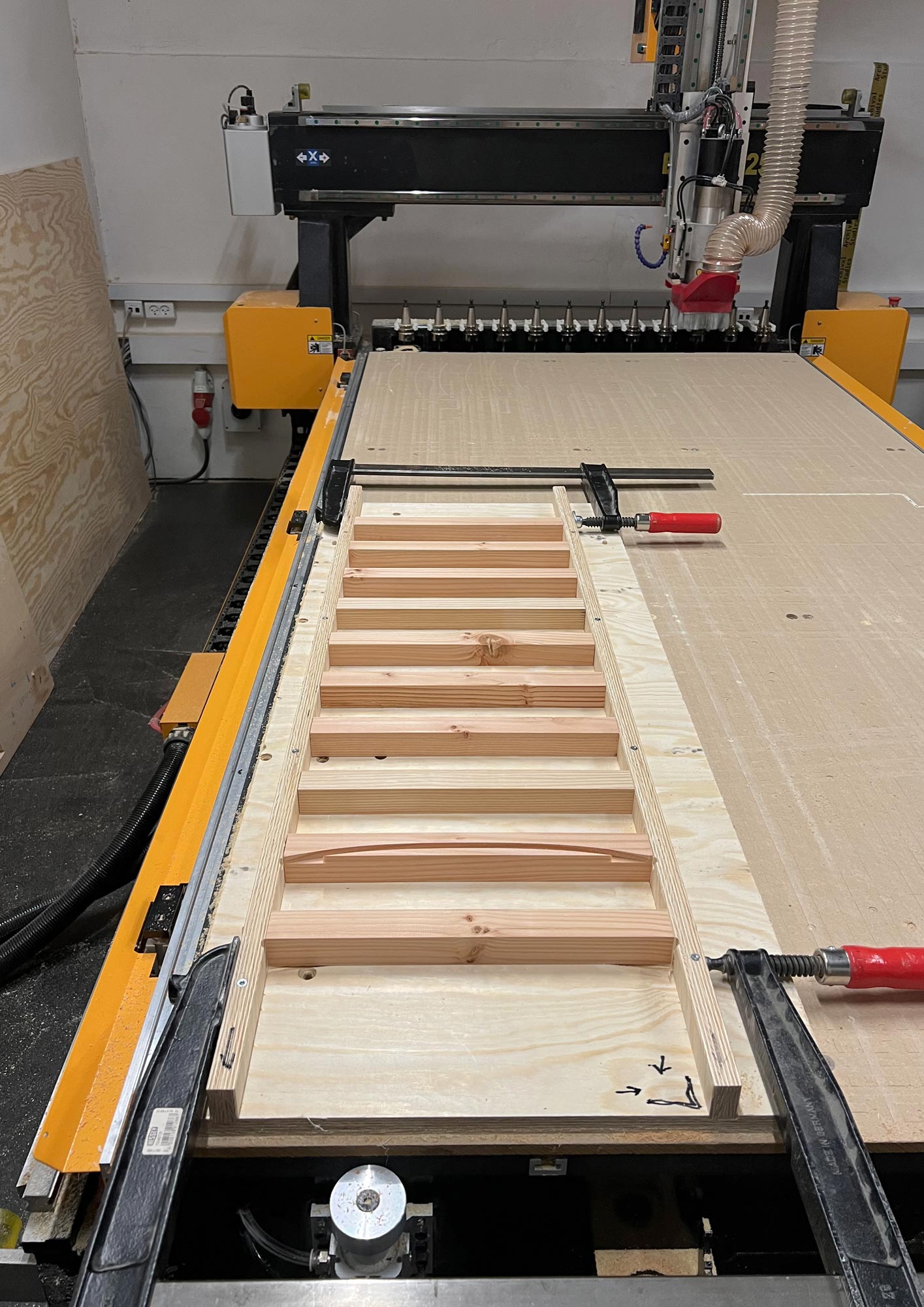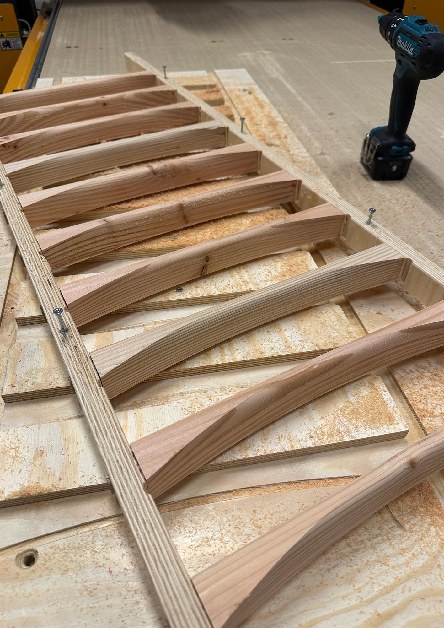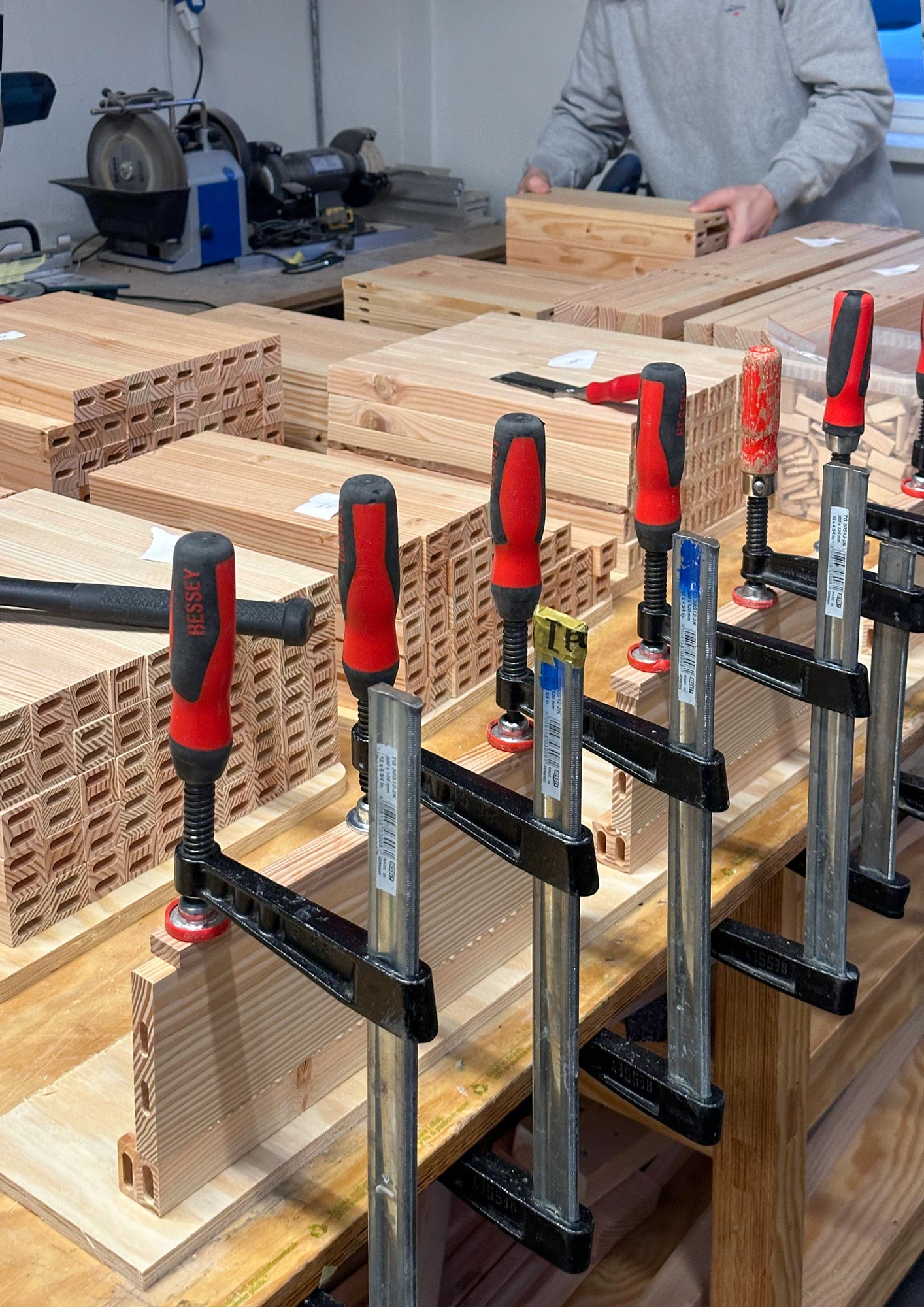 For the radical transformation of Thoravej 29 by Pihlmann Architects, Archival was commissioned by furniture and material consultant Sara Martinsen to design a high chair that would be placed throughout the building. The architecture’s uncompromising, value-driven consistency creates industrial yet transparent spaces. In response, we chose Douglas fir, treated with natural linseed oil, to bring a lively and warm expression through the bold red grain of the locally sourced wood. The lumber was sourced from Bikubenfonden’s Svanninge Bjerge natural reserve, selecting only trees that needed thinning to support the forest’s health. This approach enabled close collaboration throughout the entire process – from tree selection to the final installation at Thoravej 29. The Douglas fir used for the chair was naturally dried over several months, avoiding energy-intensive drying in ovens. While formally inspired by the Archival Ply High Chair, the Douglas High Chair – produced in-house by MSSR Works – features a thinner profile and embraces natural imperfections. Knots, wind cracks, sapwood, and planer marks are intentionally included, demonstrating how both natural and human-made irregularities can serve as examples of sustainable practice and inviting details in an increasingly perfected world. In this way, the chair enters into a dialogue with the building itself.