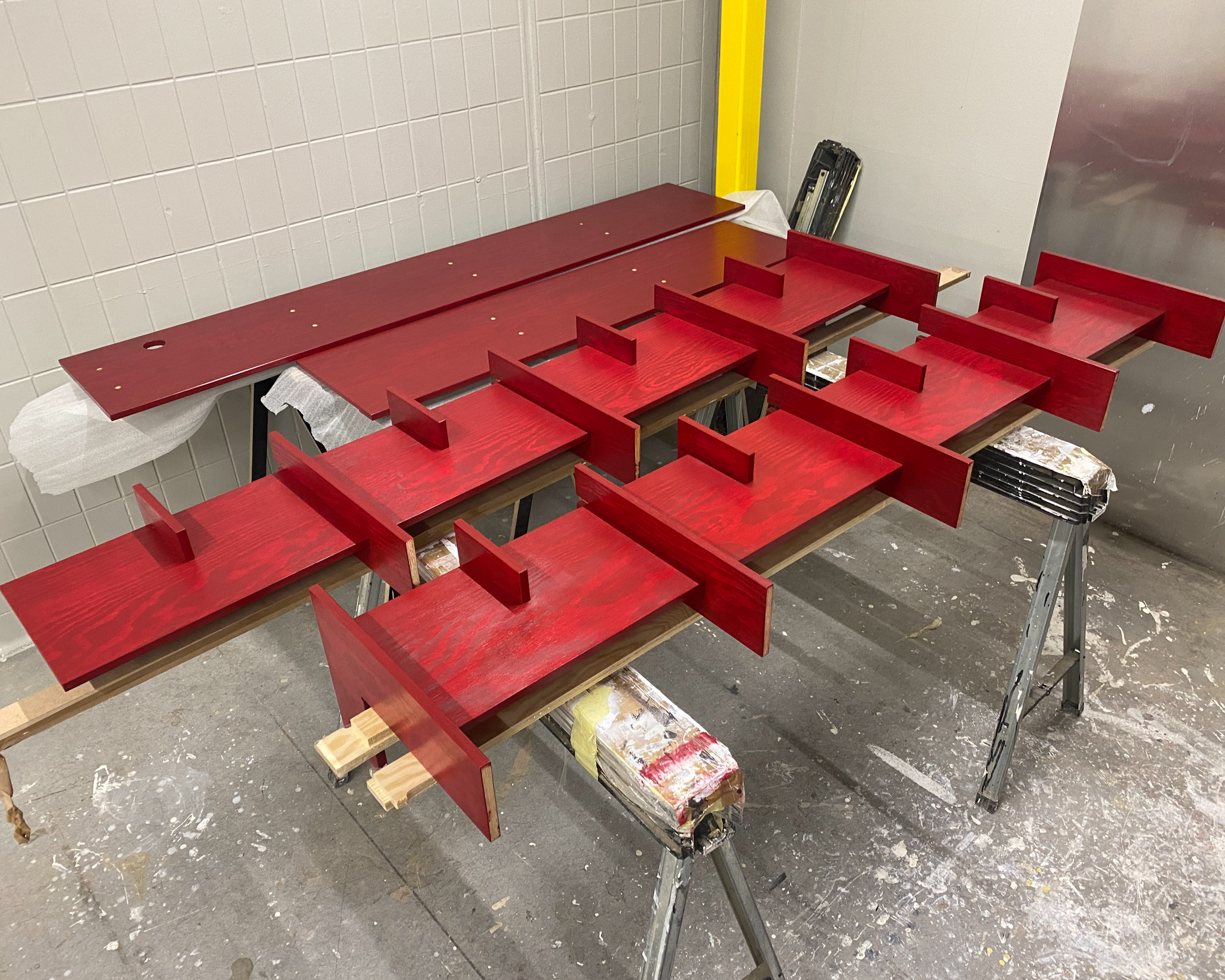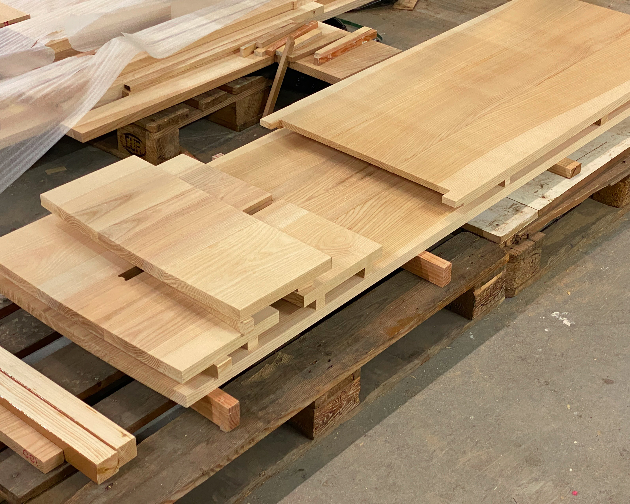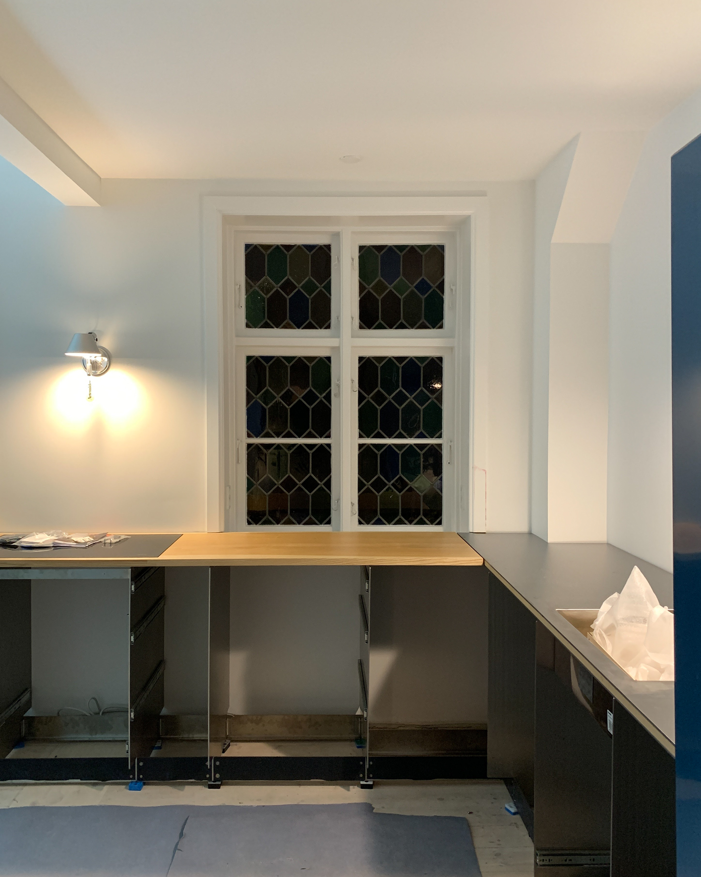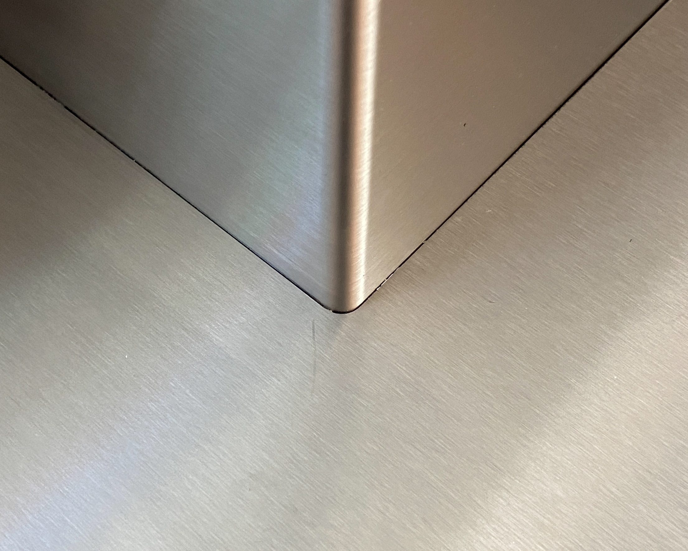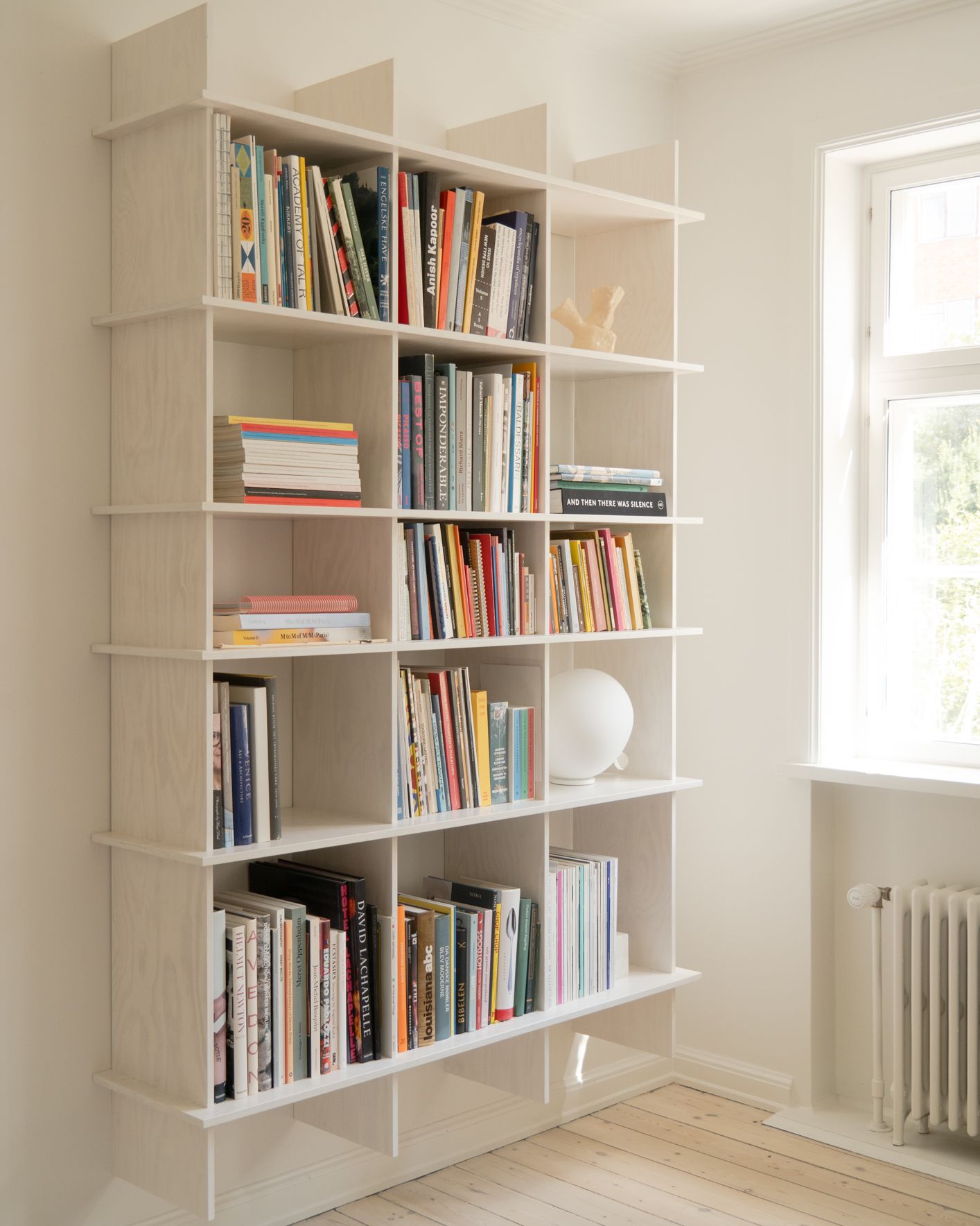 The brief for our latest residential project was to create a functional industrial kitchen balanced by a domestic touch. The part of the kitchen holding the “wet appliances”, such as the sink, fridge and dishwasher is realized in brushed stainless steel. The other length of the kitchen extending towards the dining room, is realized in vibrant Ashwood, bringing it into relation with the rest of the house’s warm interior. A fine strip of Ashwood under the stainless steel countertop references the kitchens wooden elements, subtly connecting the two sections of the of the structure. Subtle curves throughout the wooden fronts give softness to the metal kitchen and elegance to the overall mass. The brushed surface of the stainless steel elements softly reflect the color of the Ashwood surfaces, resulting in an overall bright and warm atmosphere. As part of this residential kitchen project we also developed a range of linseed oil-painted plywood furniture.