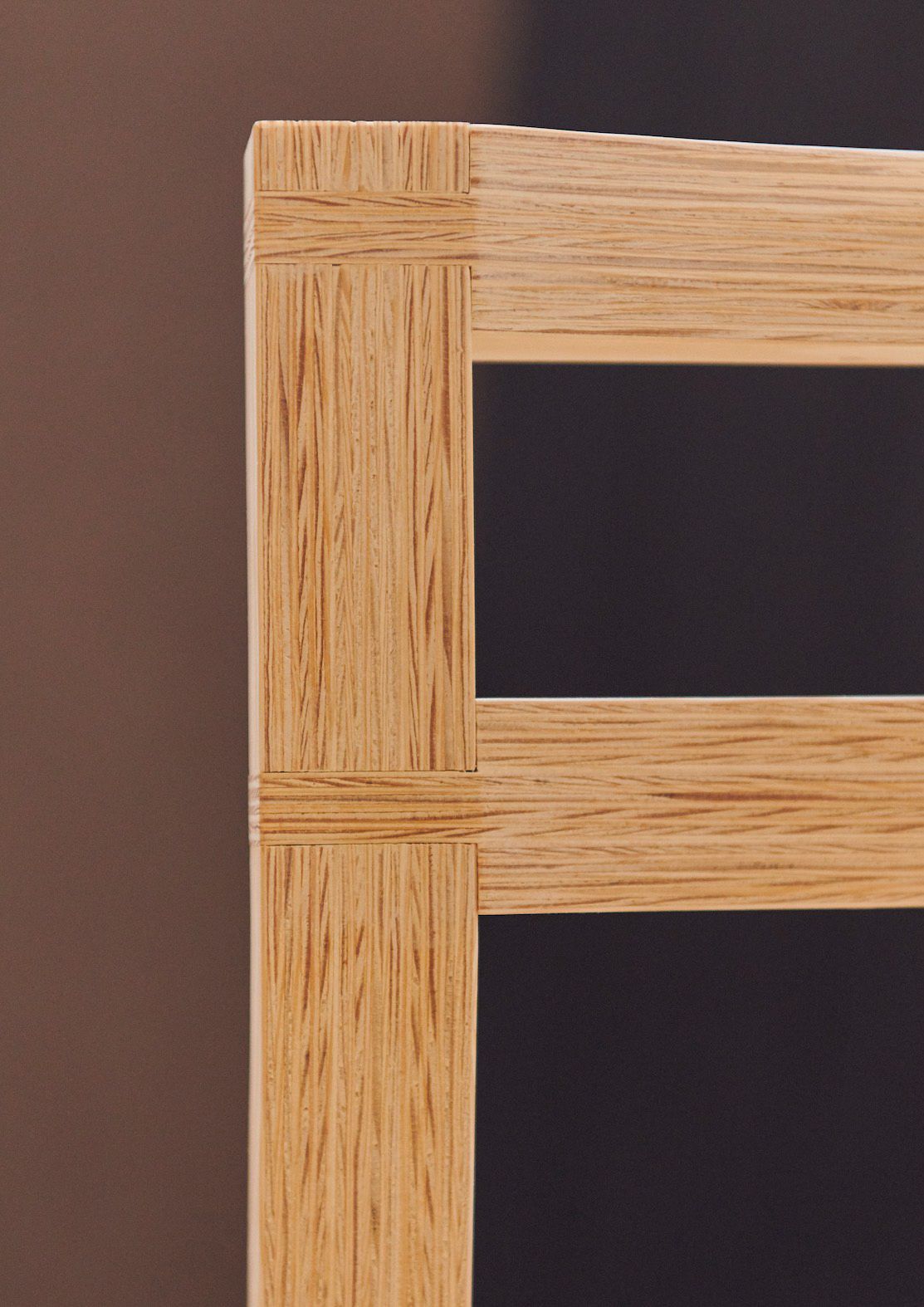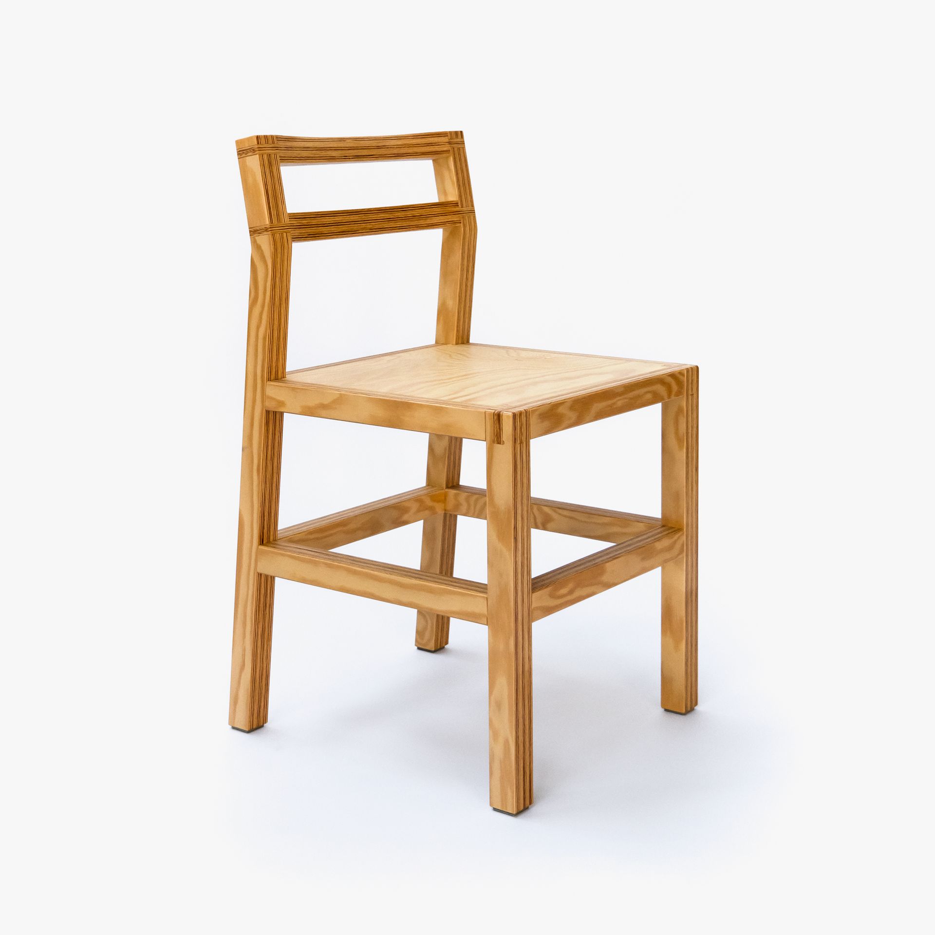 The Ply Chair has a strict rhythm and dynamic pattern that works as standalone object or as a series for the dining table. Made entirely of laminated pine plywood, this chair contains the texture and visual identity of the process in which it was produced. It showcases how industrial materials, with the right technology and care, can be uplifted to present a new definition of material quality. Designed and manufactured in-house in Copenhagen, Denmark.